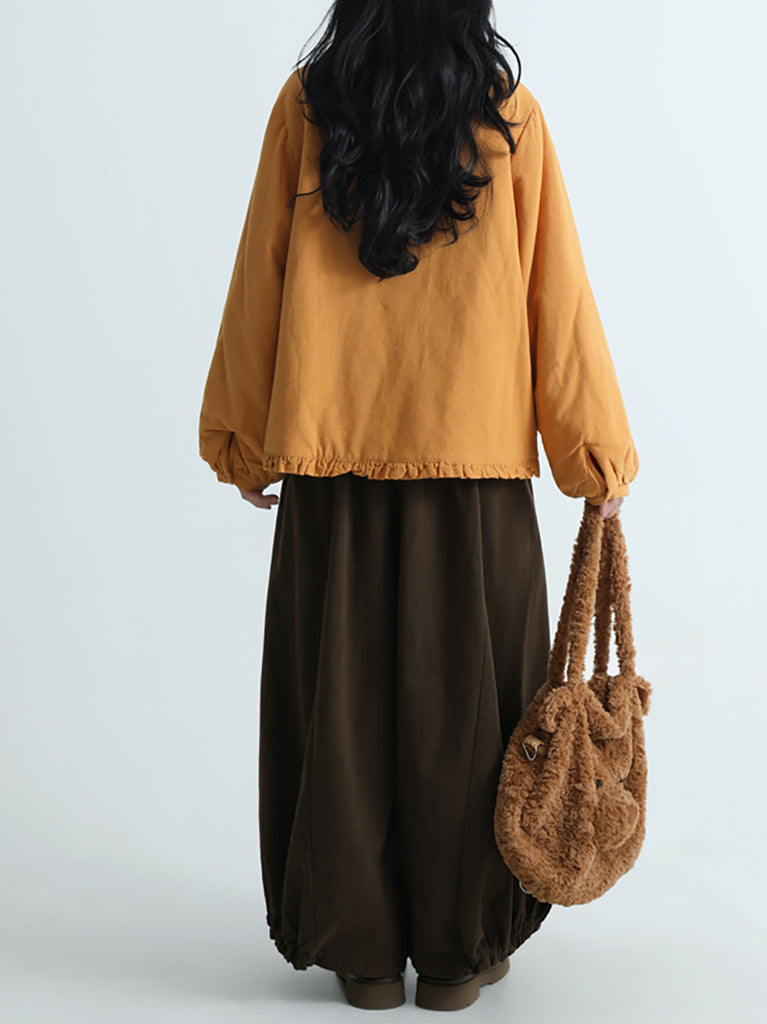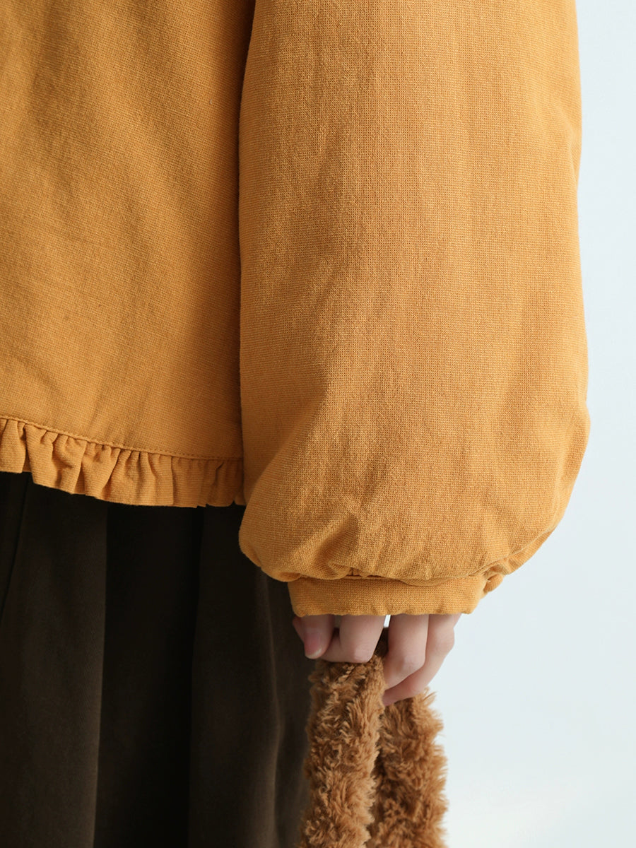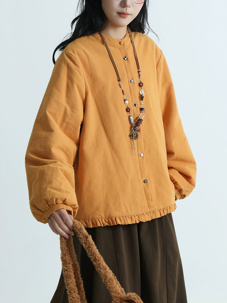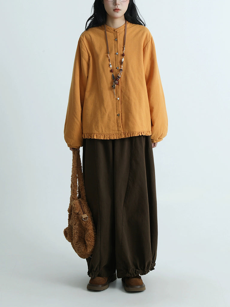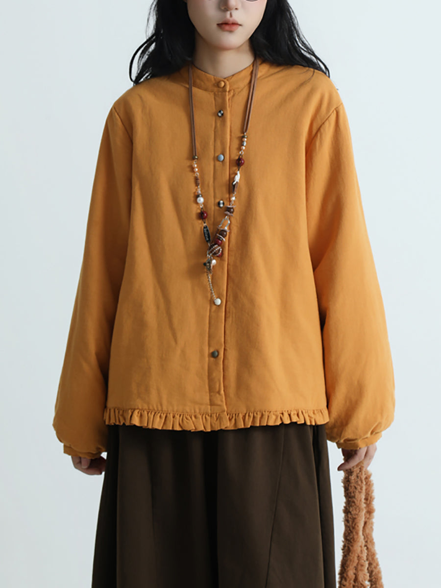 Women Artsy Pure Color Cotton Stand Collar Blouse