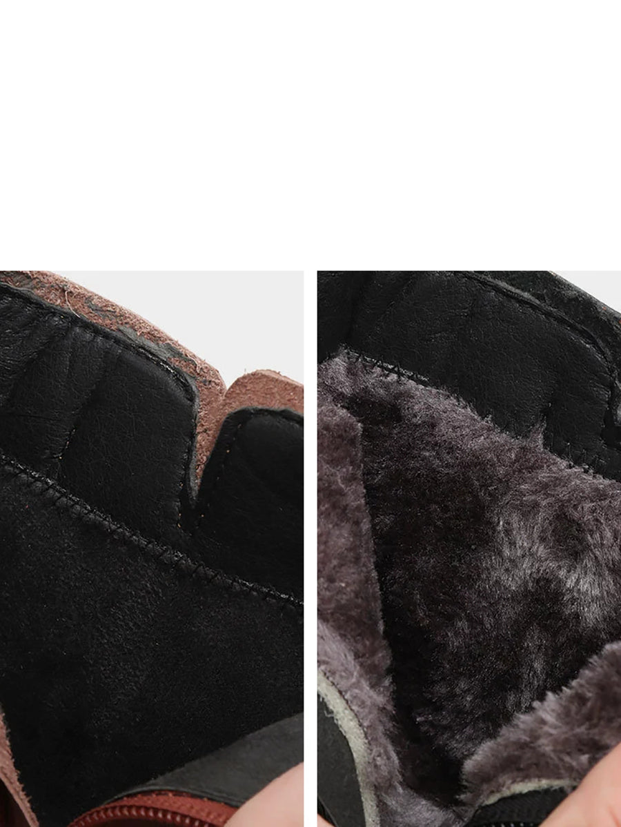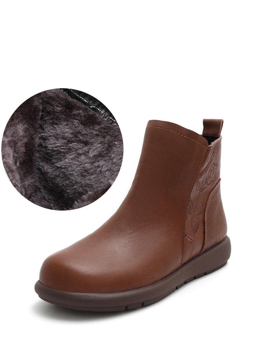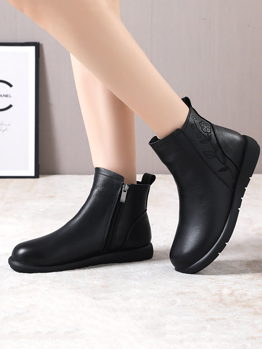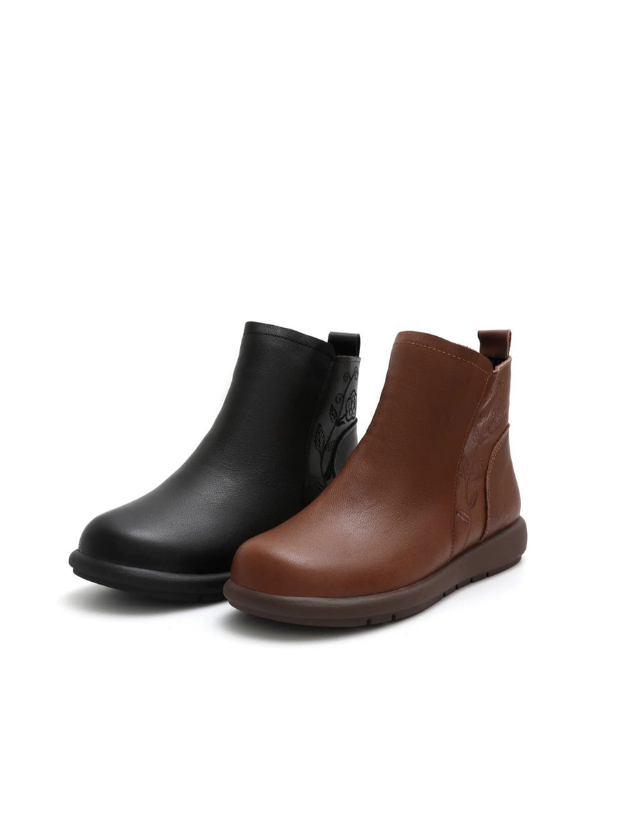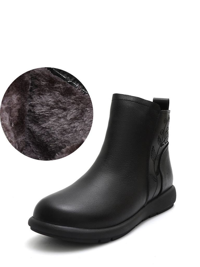 Women Winter Genuine Leather Flower Embossing Boots