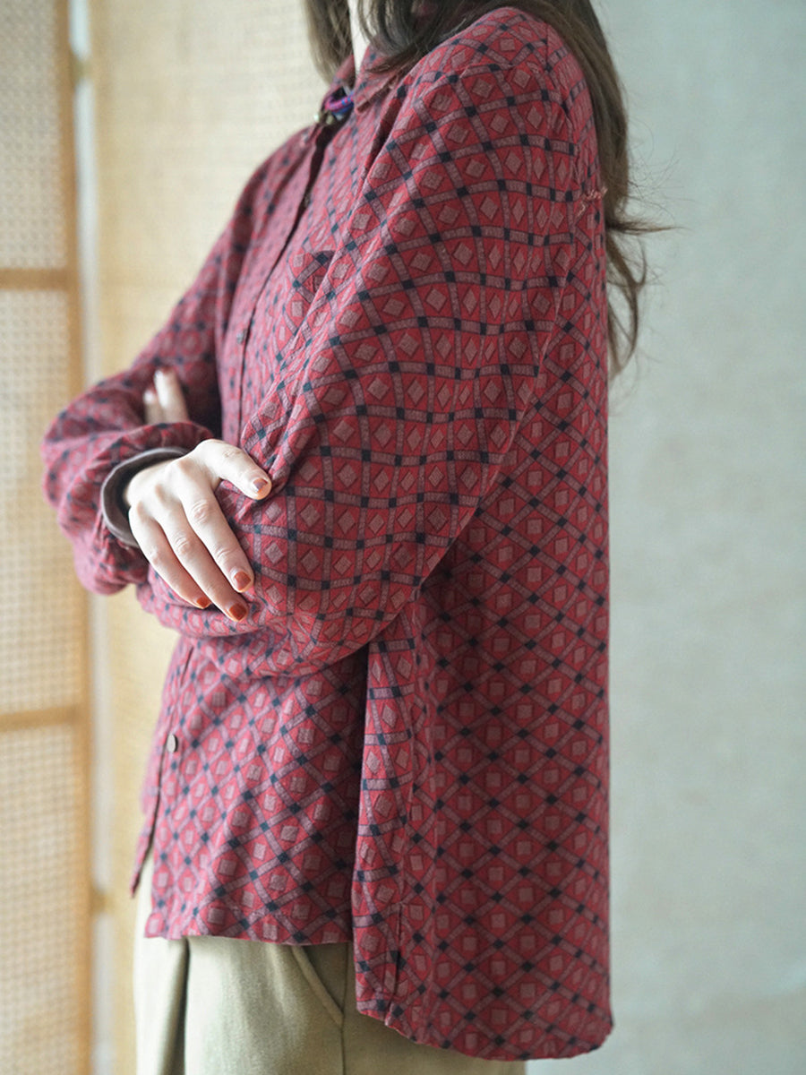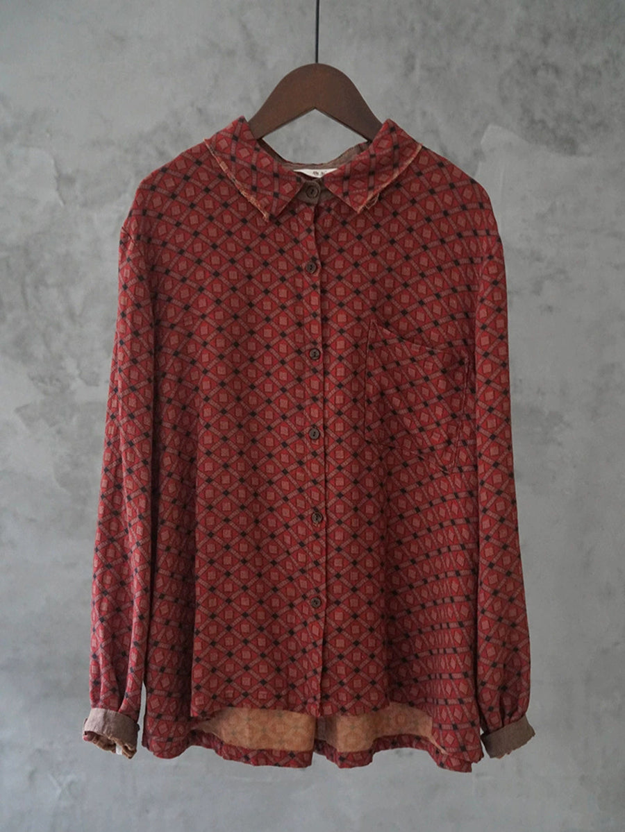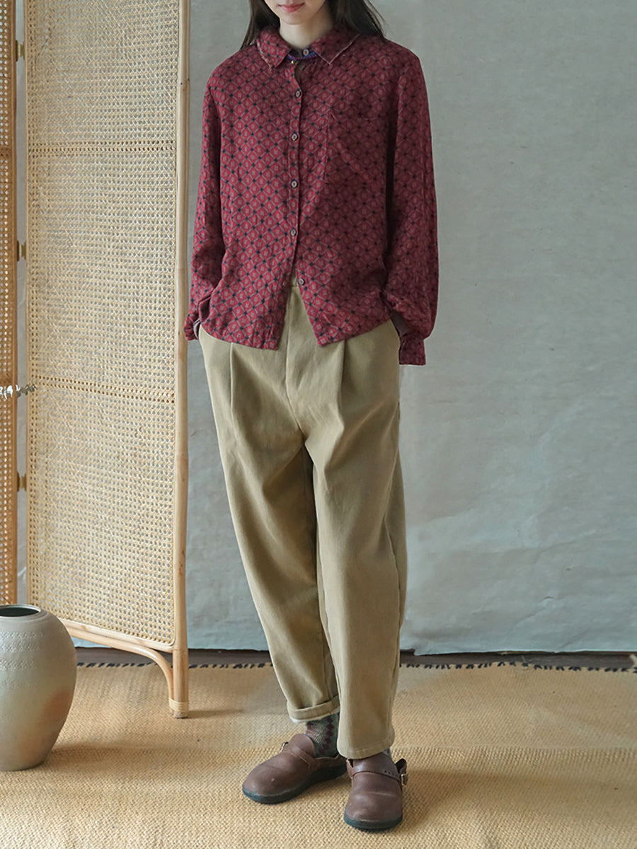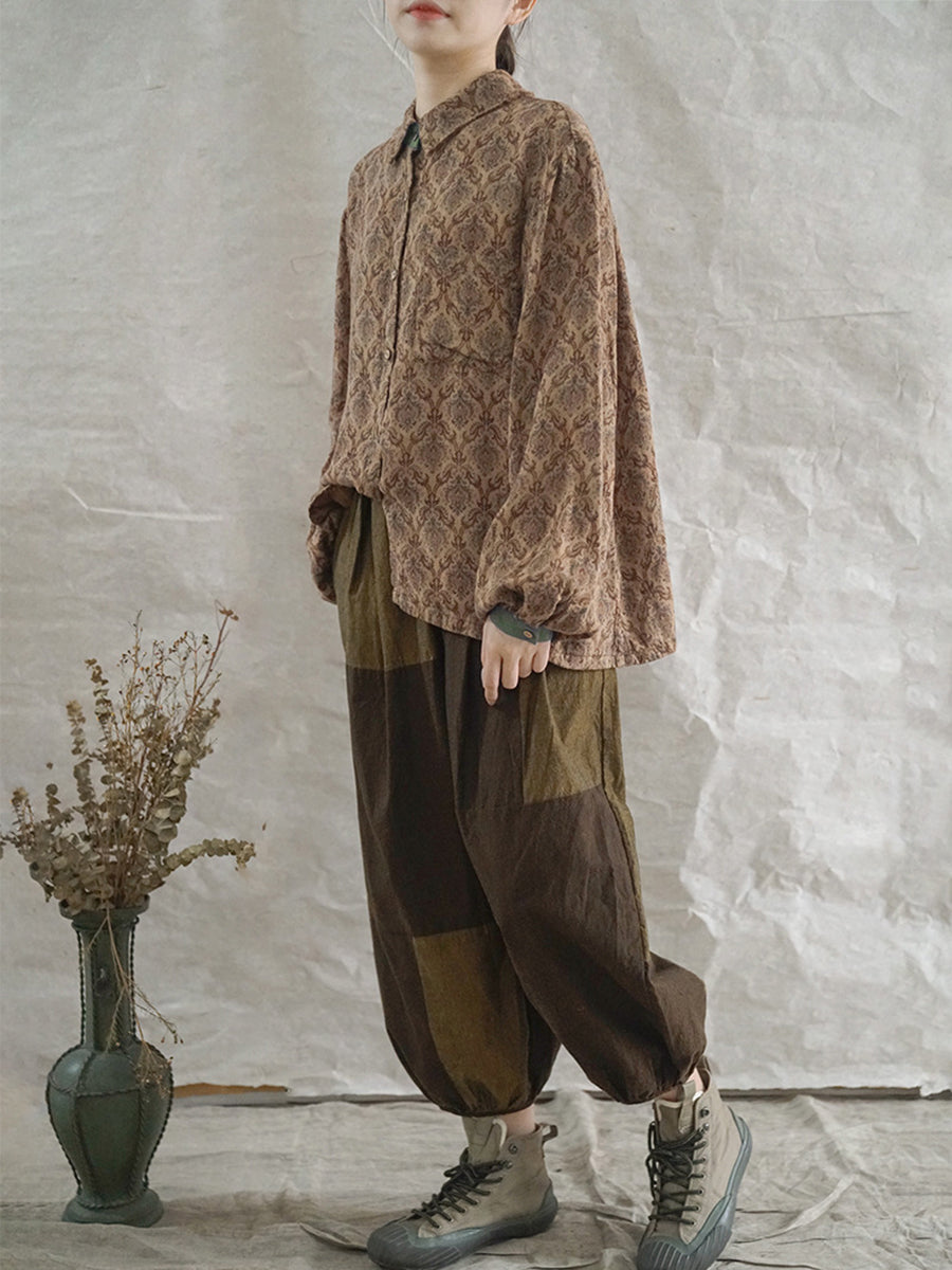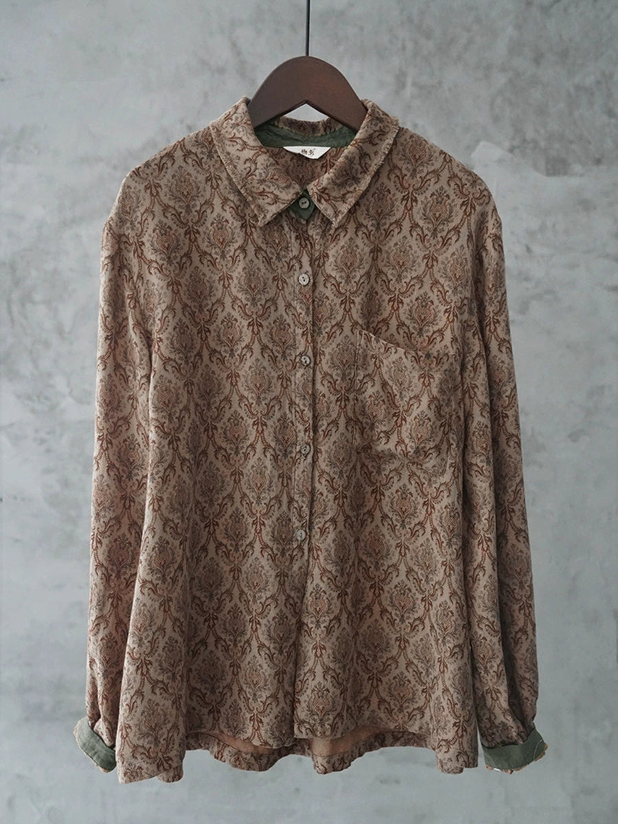 Women Artsy Spring Flower Turn-down Collar Cotton Shirt