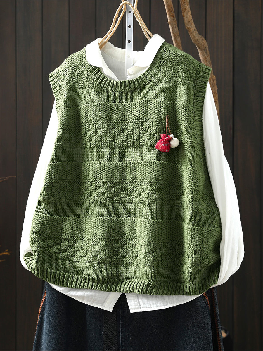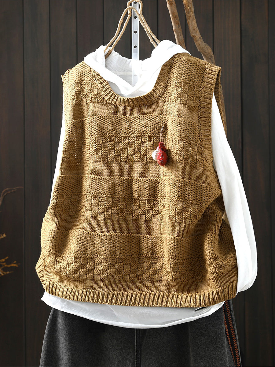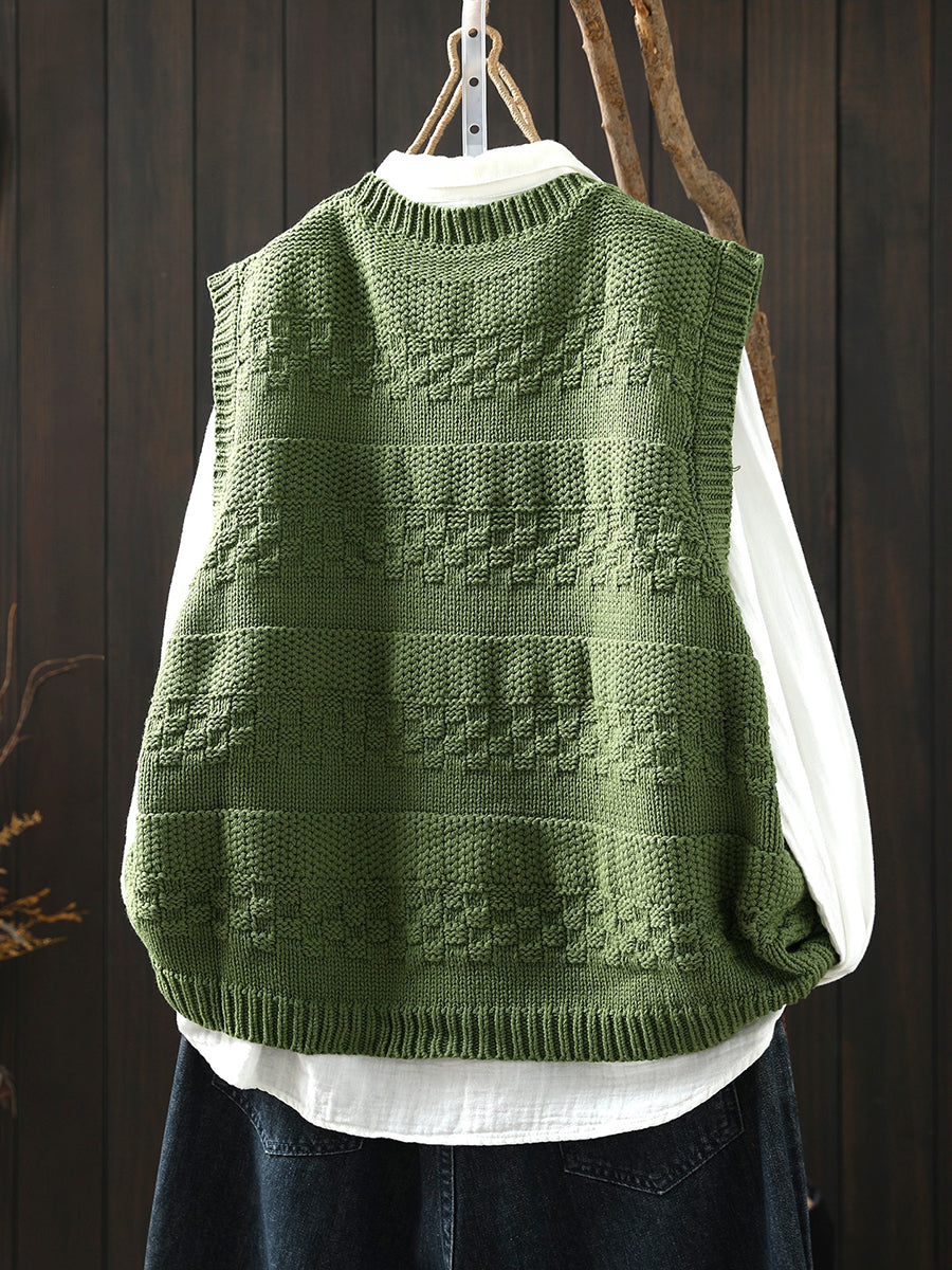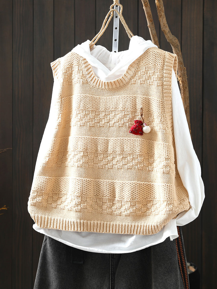 Crafted from a thoughtfully balanced blend of 55% acrylic and 45% cotton, this artsy knitted vest delivers both comfort and durability. The classic O-neck silhouette offers versatile styling options, while the pure color palette ensures effortless coordination with your existing wardrobe. Designed with an artistic sensibility, this piece transitions seamlessly through autumn and winter months, making it an essential layering staple for the discerning dresser.