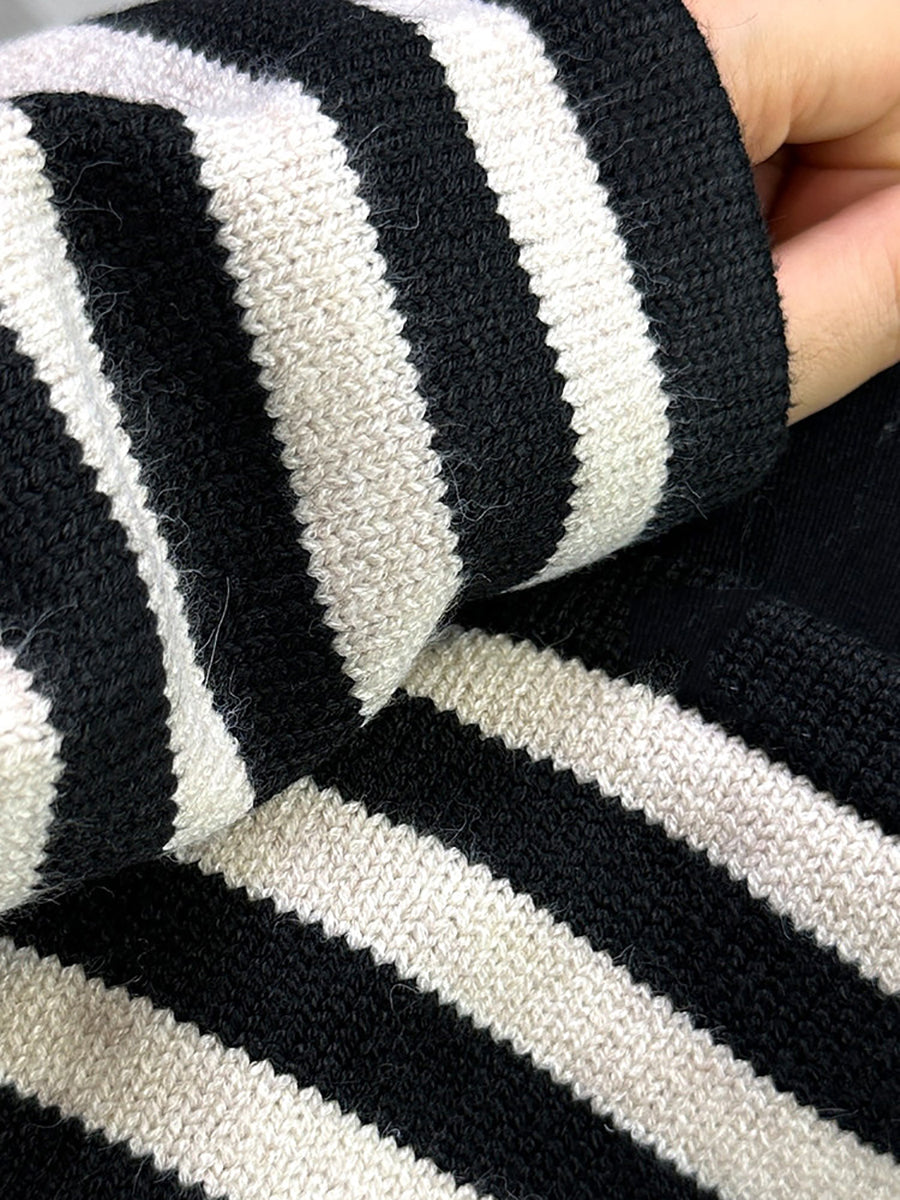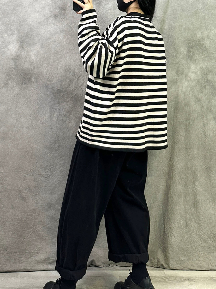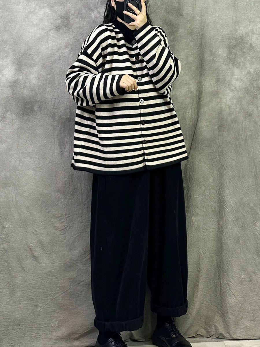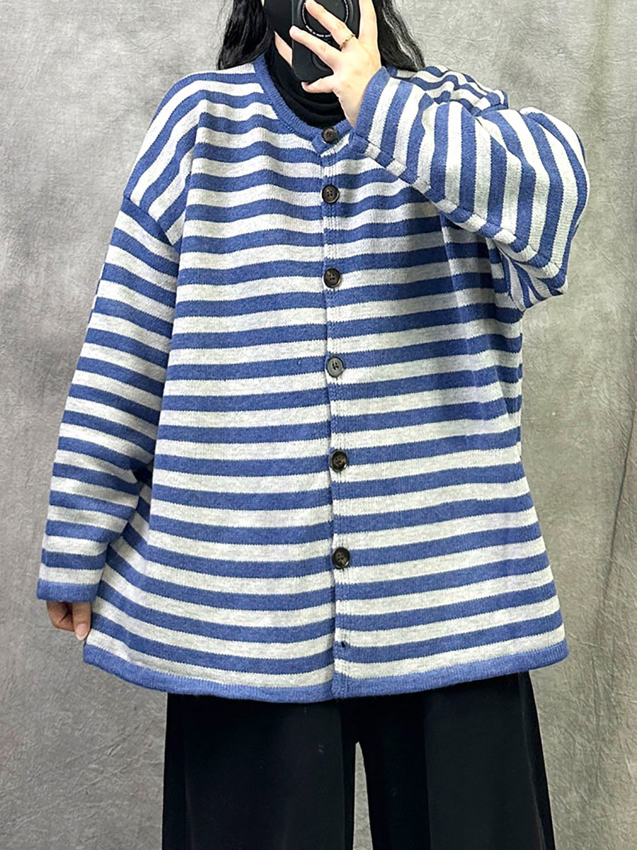 Women Artsy Spring Stripe O-Neck Knitted Cardigan
