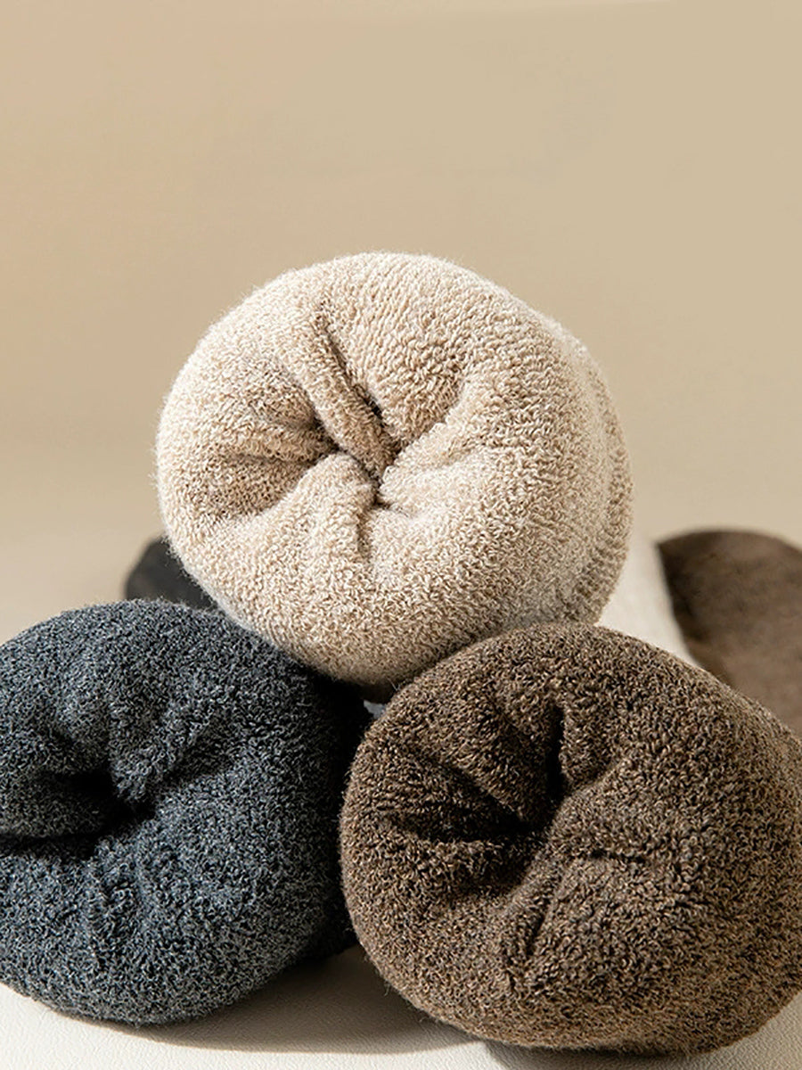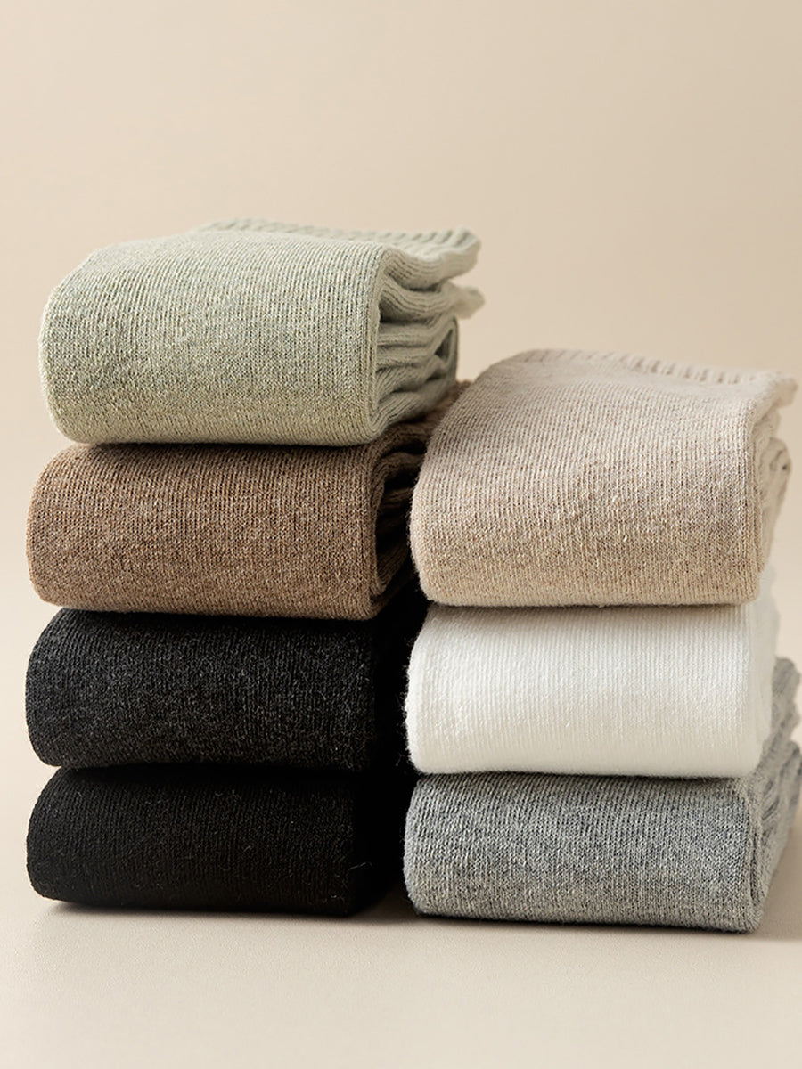 4 Pairs Women Winter Casual Pure Color Calf Socks
