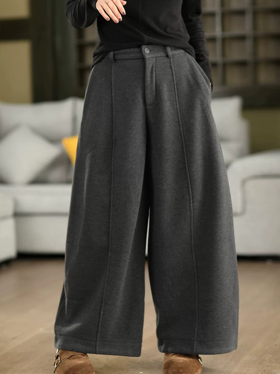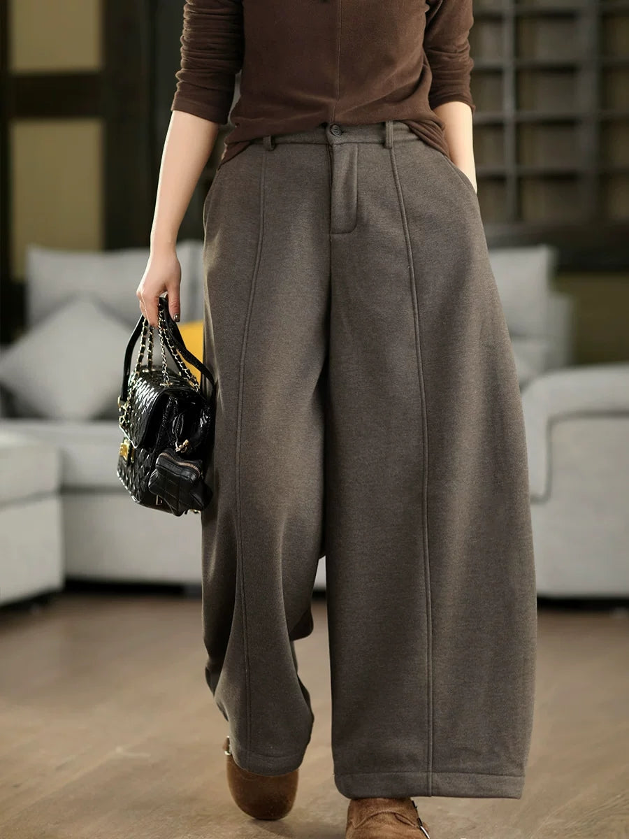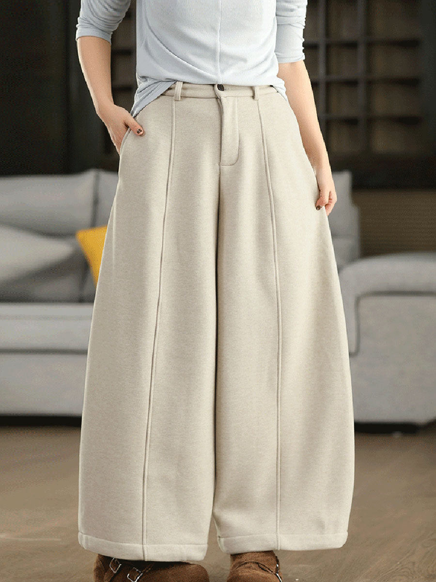 Women Winter Casual Pure Color Fleece-lined Wide-leg Pants