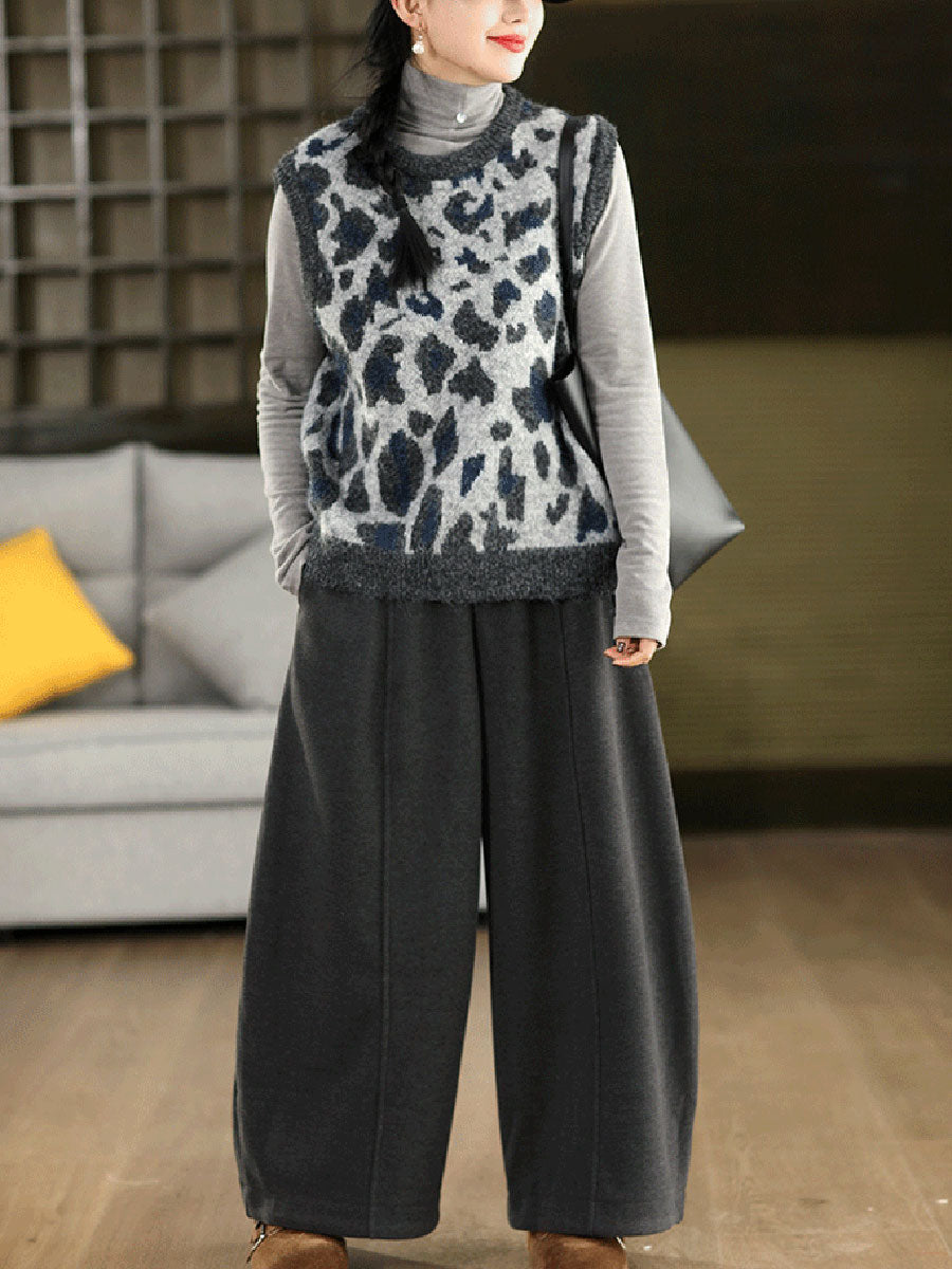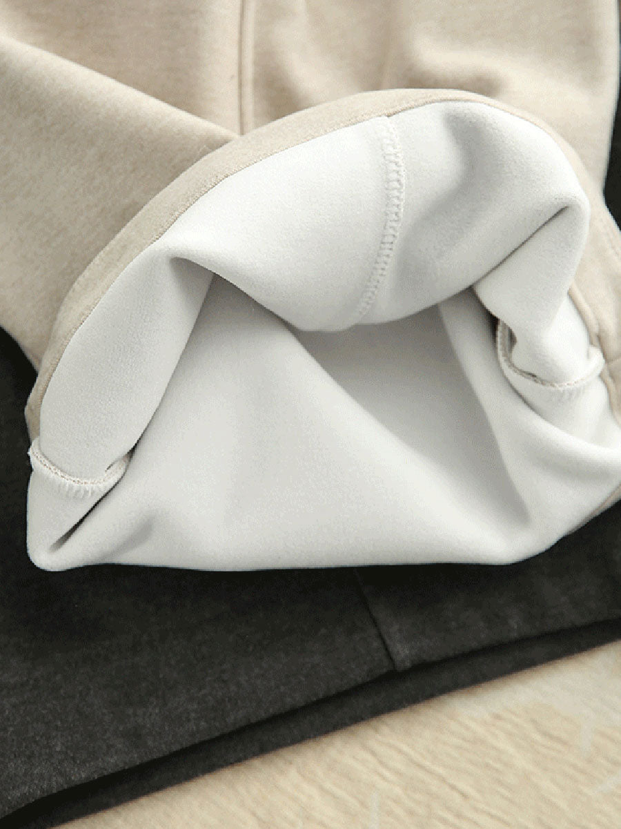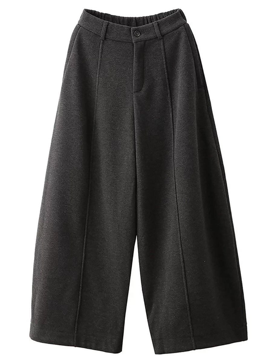 Women Winter Casual Pure Color Fleece-lined Wide-leg Pants