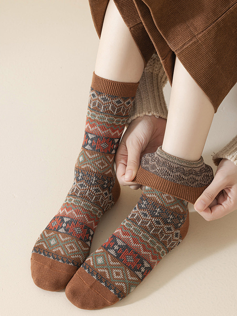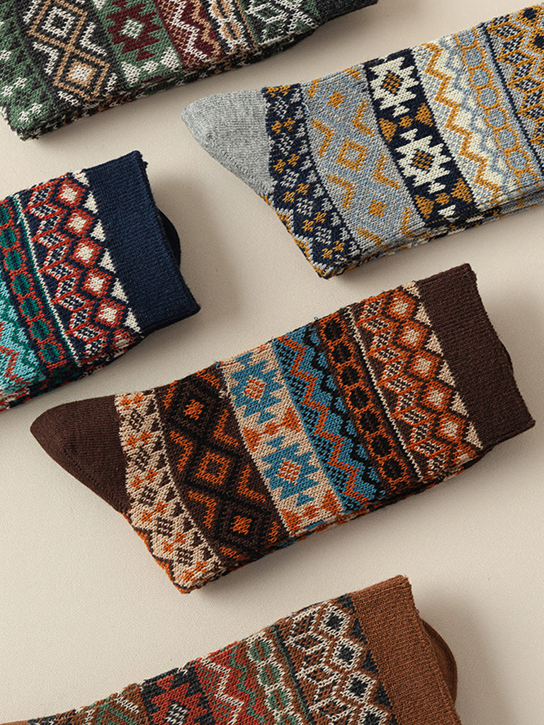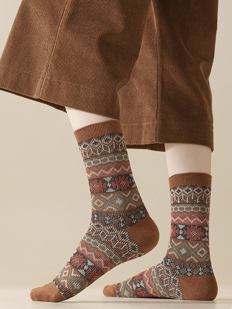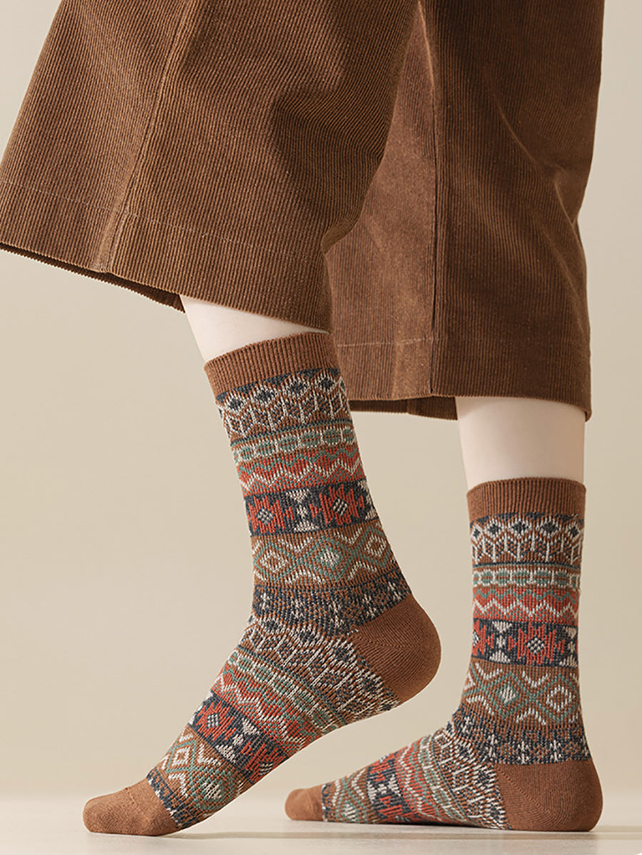 5 Pairs Winter Ethnic Flower Mid Heel Socks