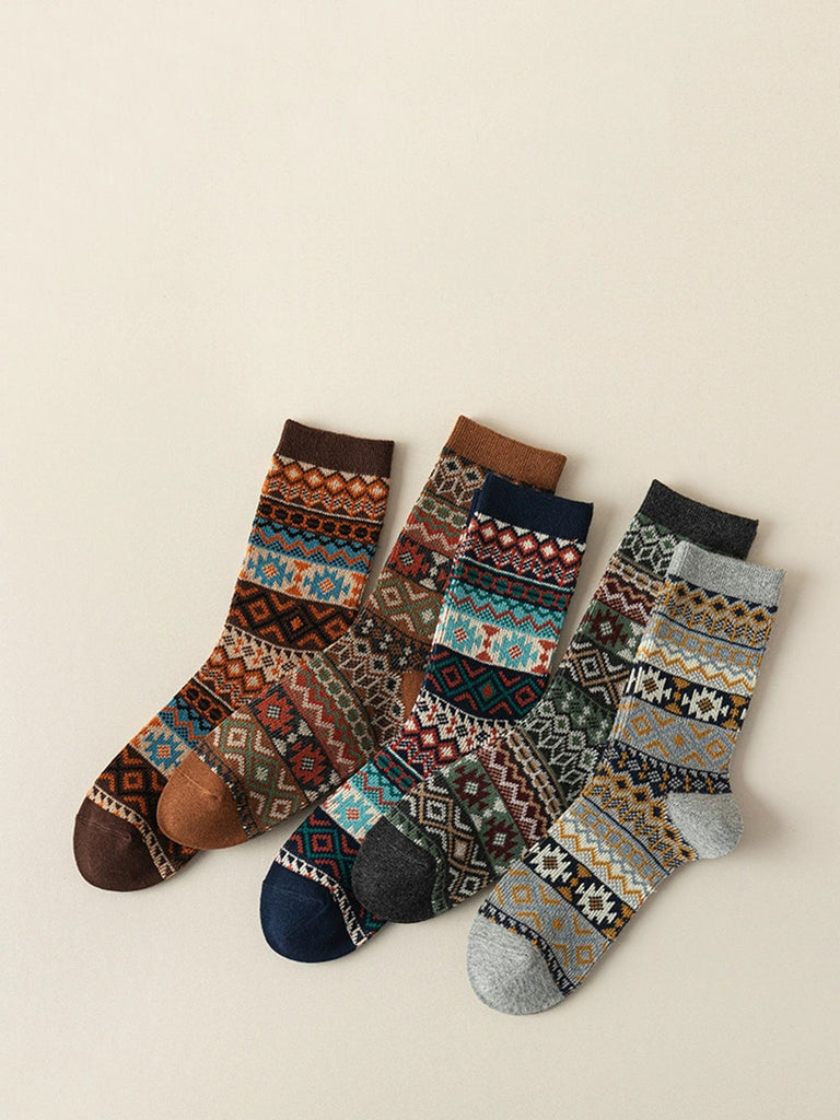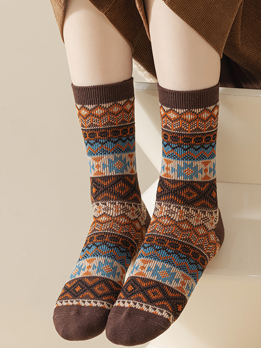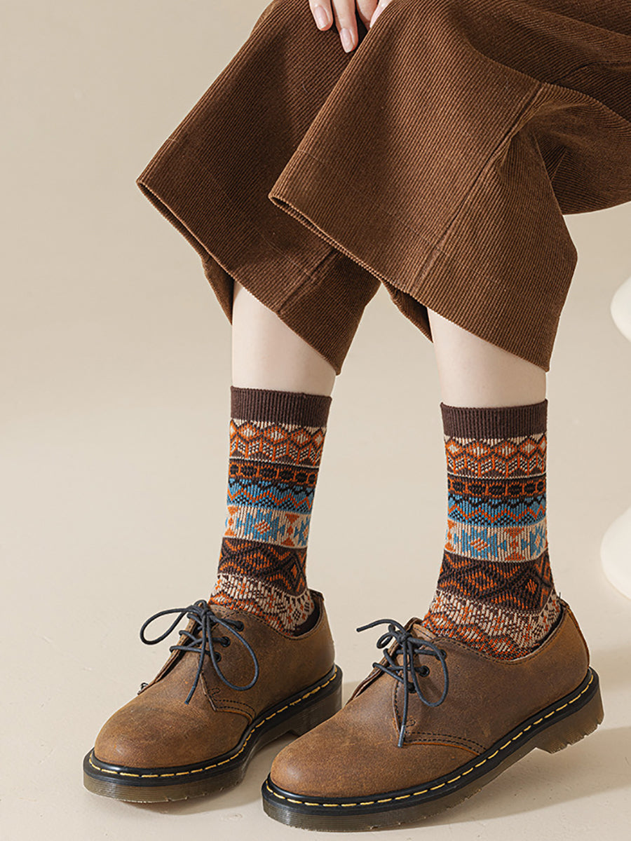 5 Pairs Winter Ethnic Flower Mid Heel Socks