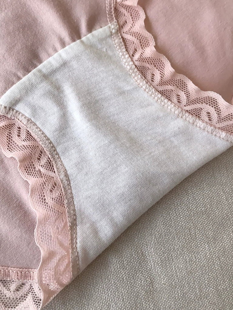 5 Pieces Women Casual Pure Color High Waist Lace Underwear