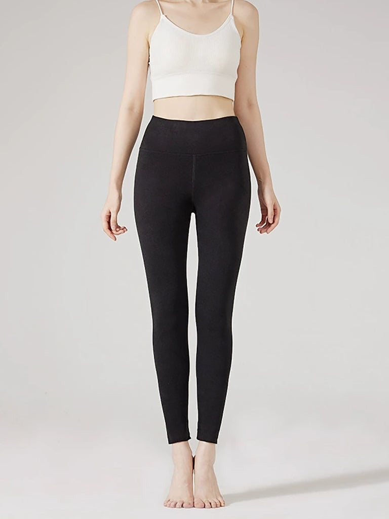 Women Winter Warm Pure Color High Waist Leggings