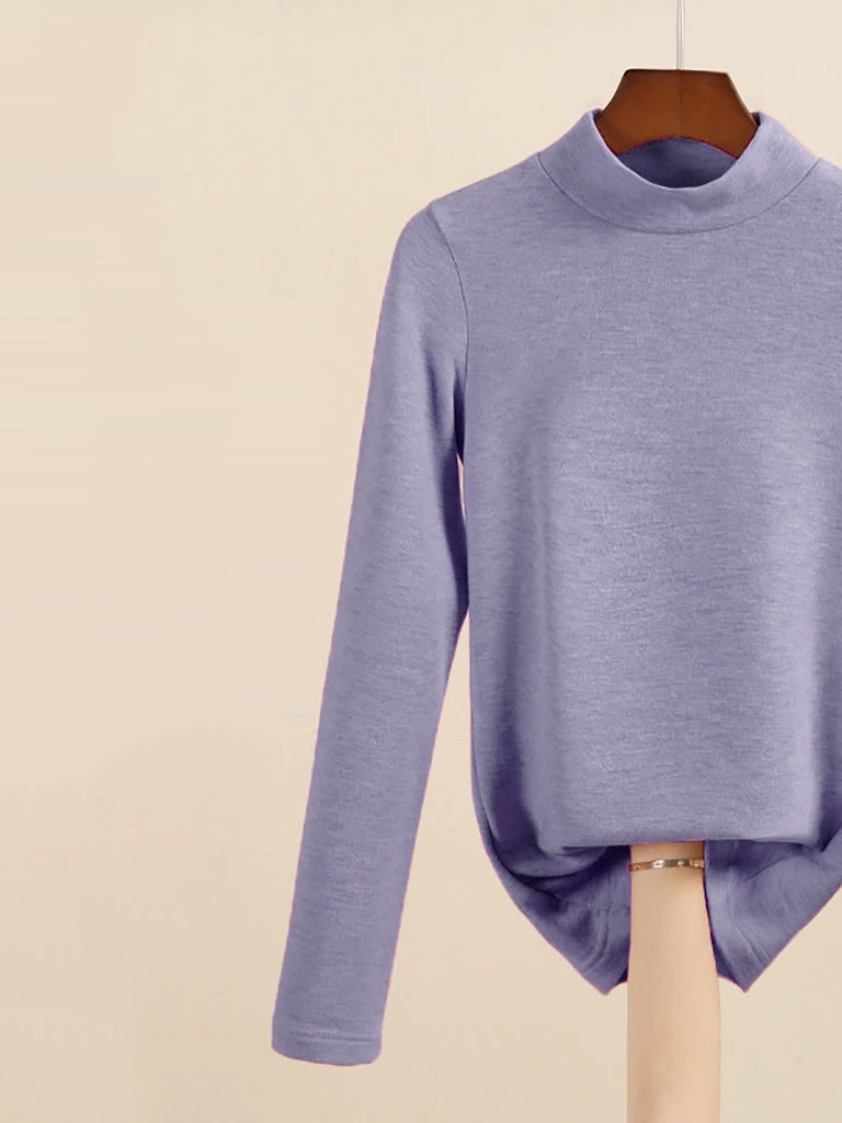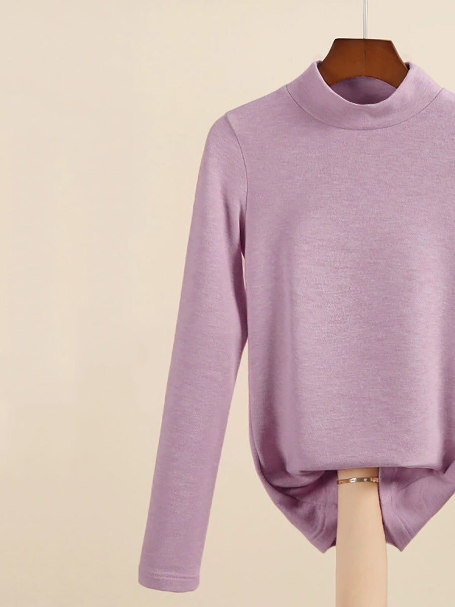 Women Autumn Casual Warm Mid Collar Base Blouse