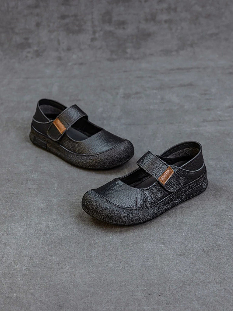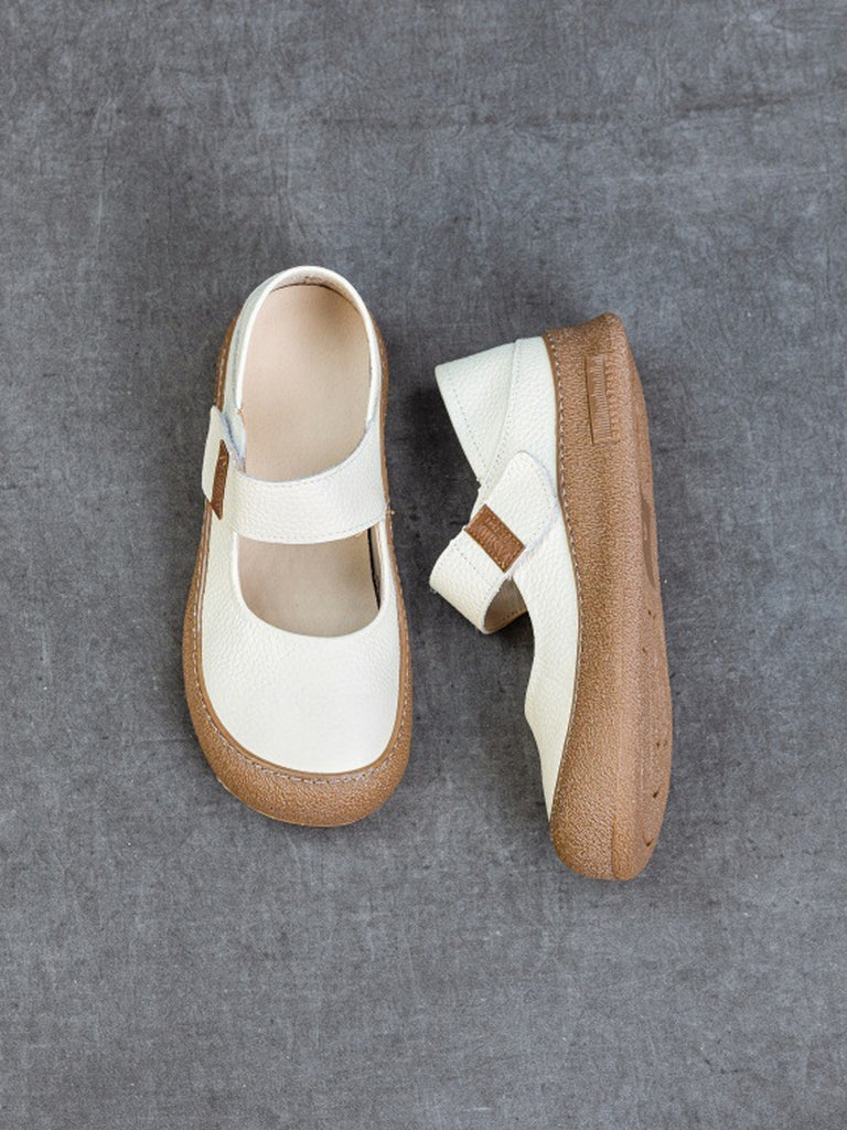 Women Casual Genuine Leather Colorblock Flat Shoes