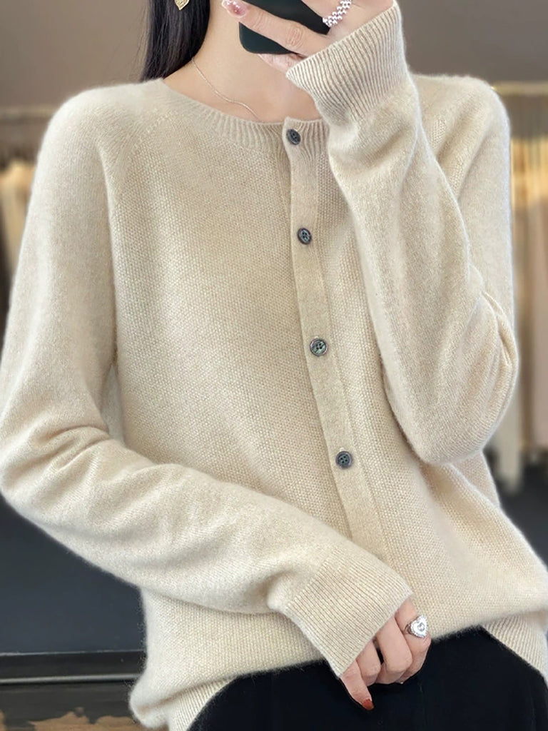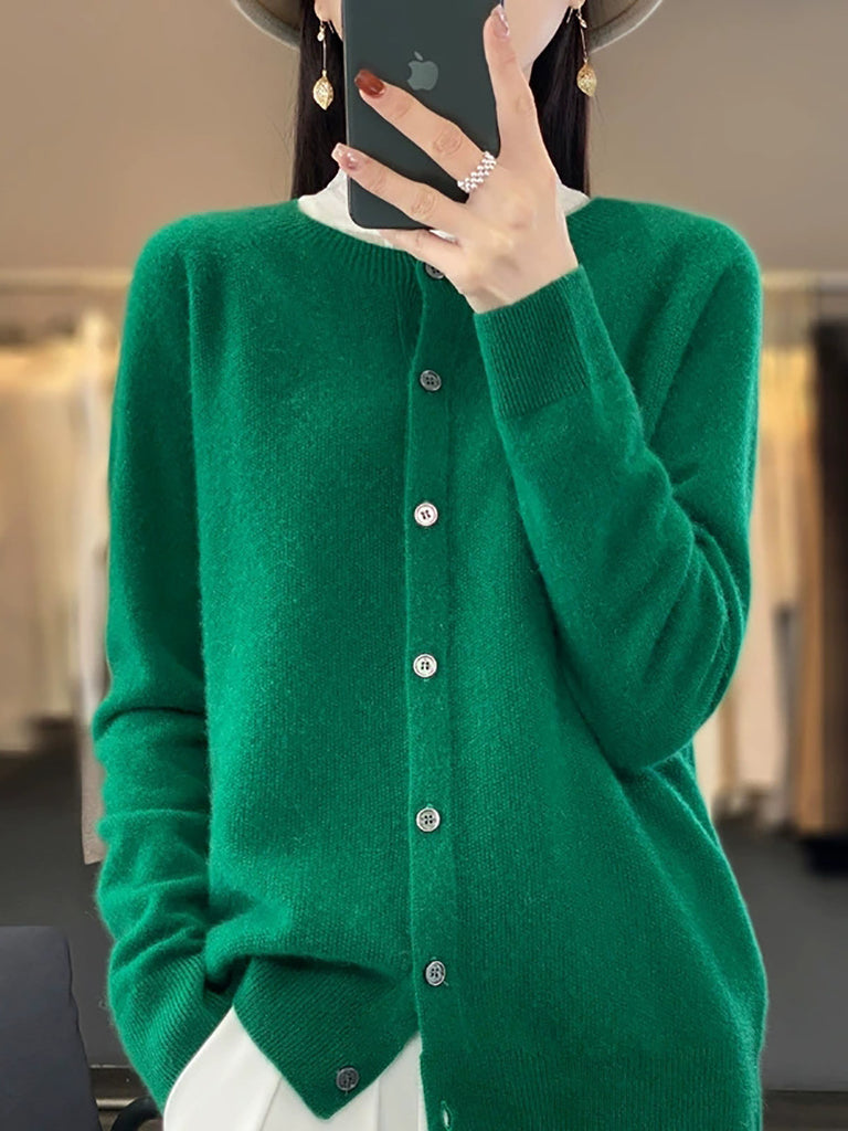 Women Autumn Casual Pure Color O-Neck Sweater