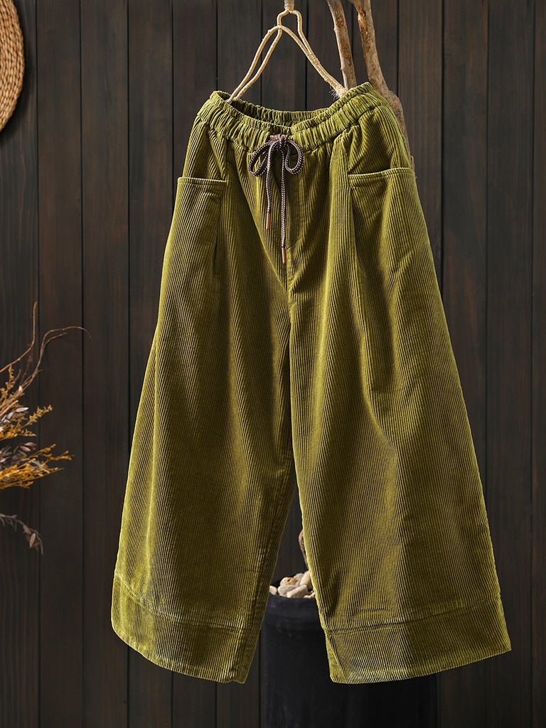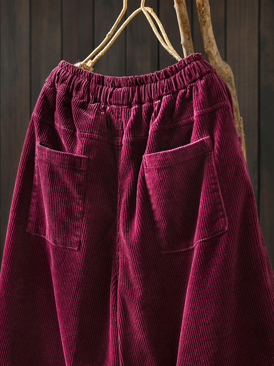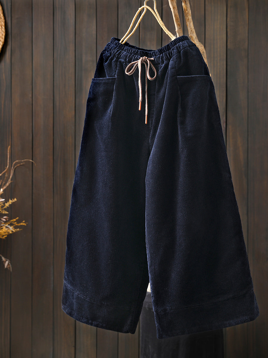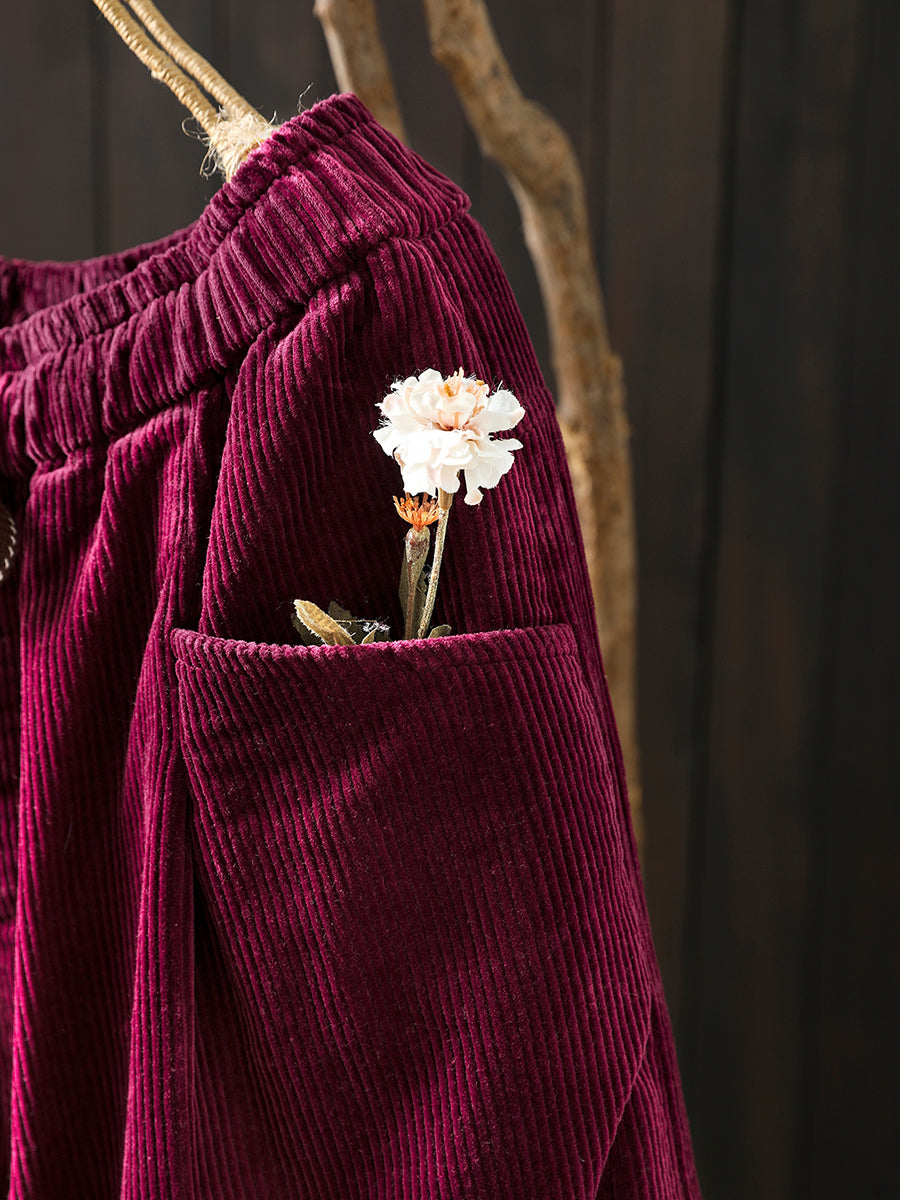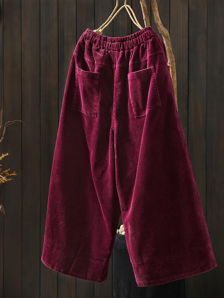 Women Winter Retro Corduroy Padded Wide-leg Pants