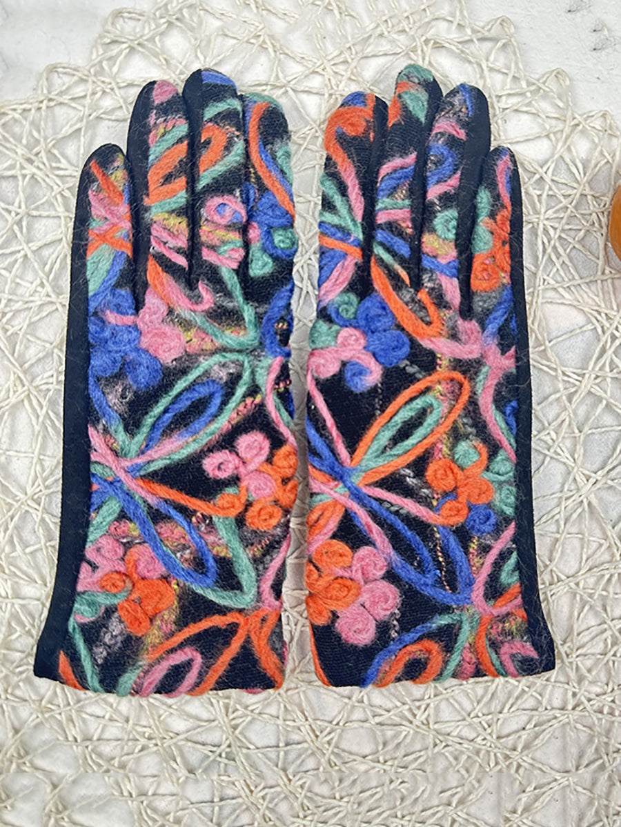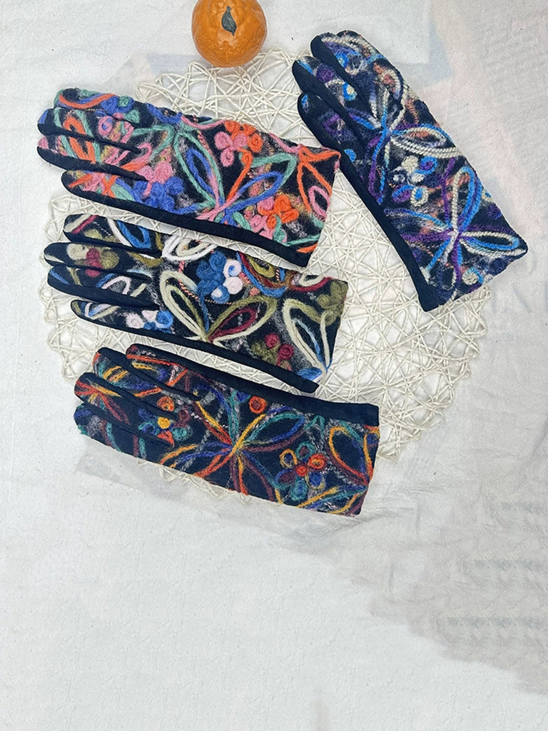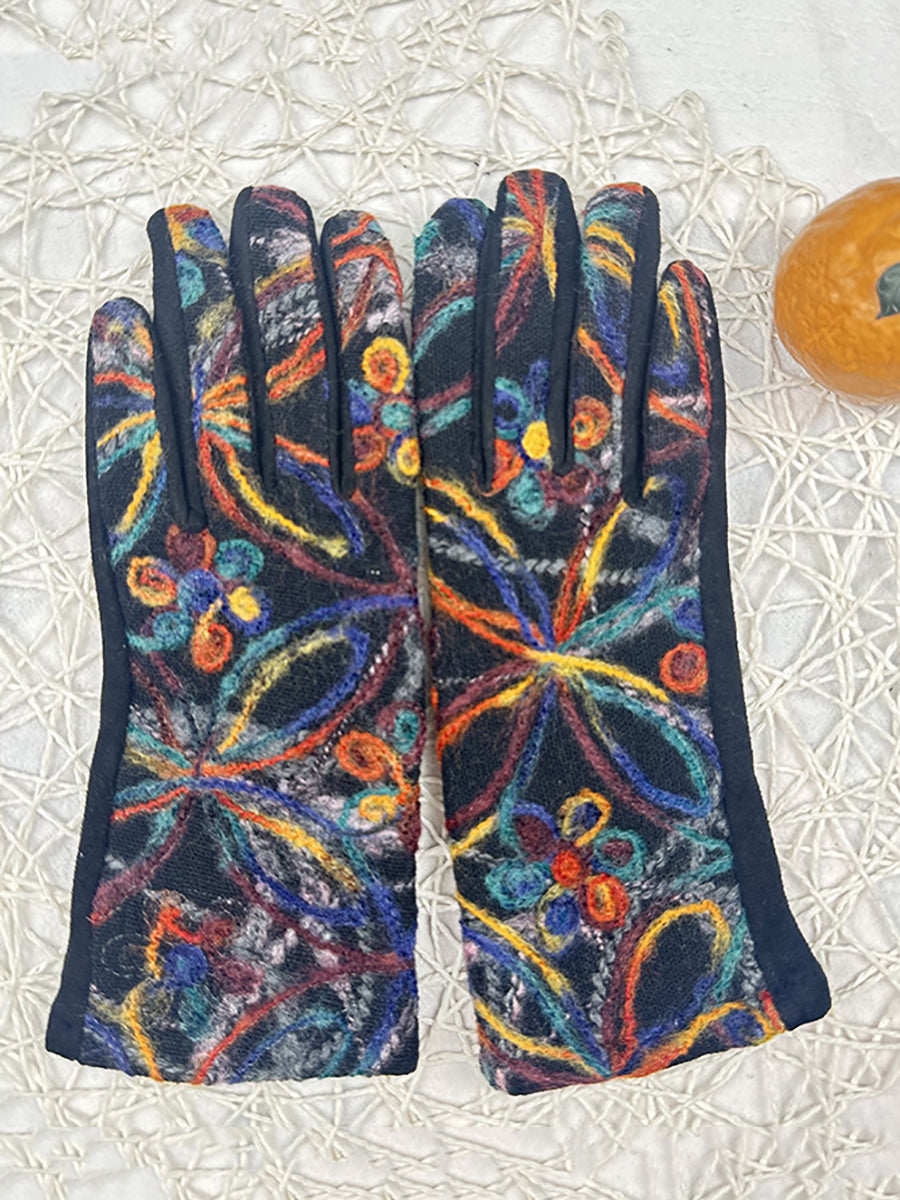 Women Ethnic Flower Knitted Warm Cycling Gloves