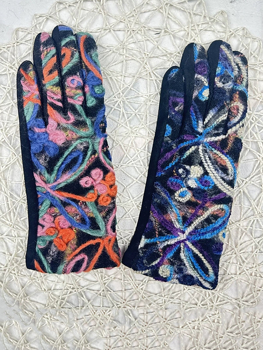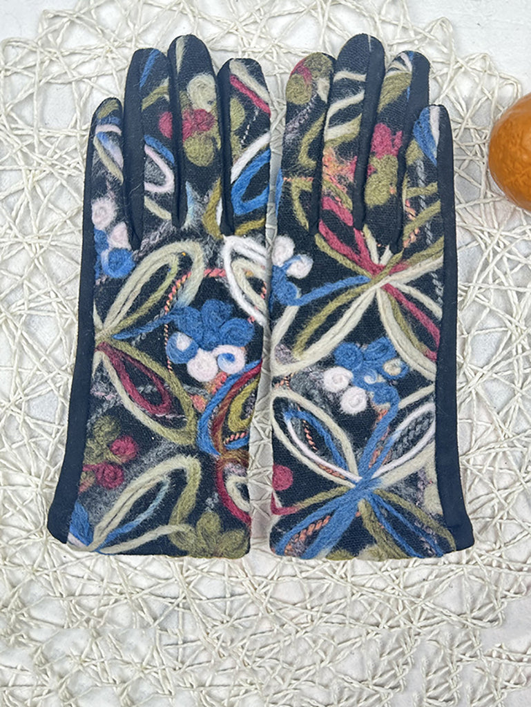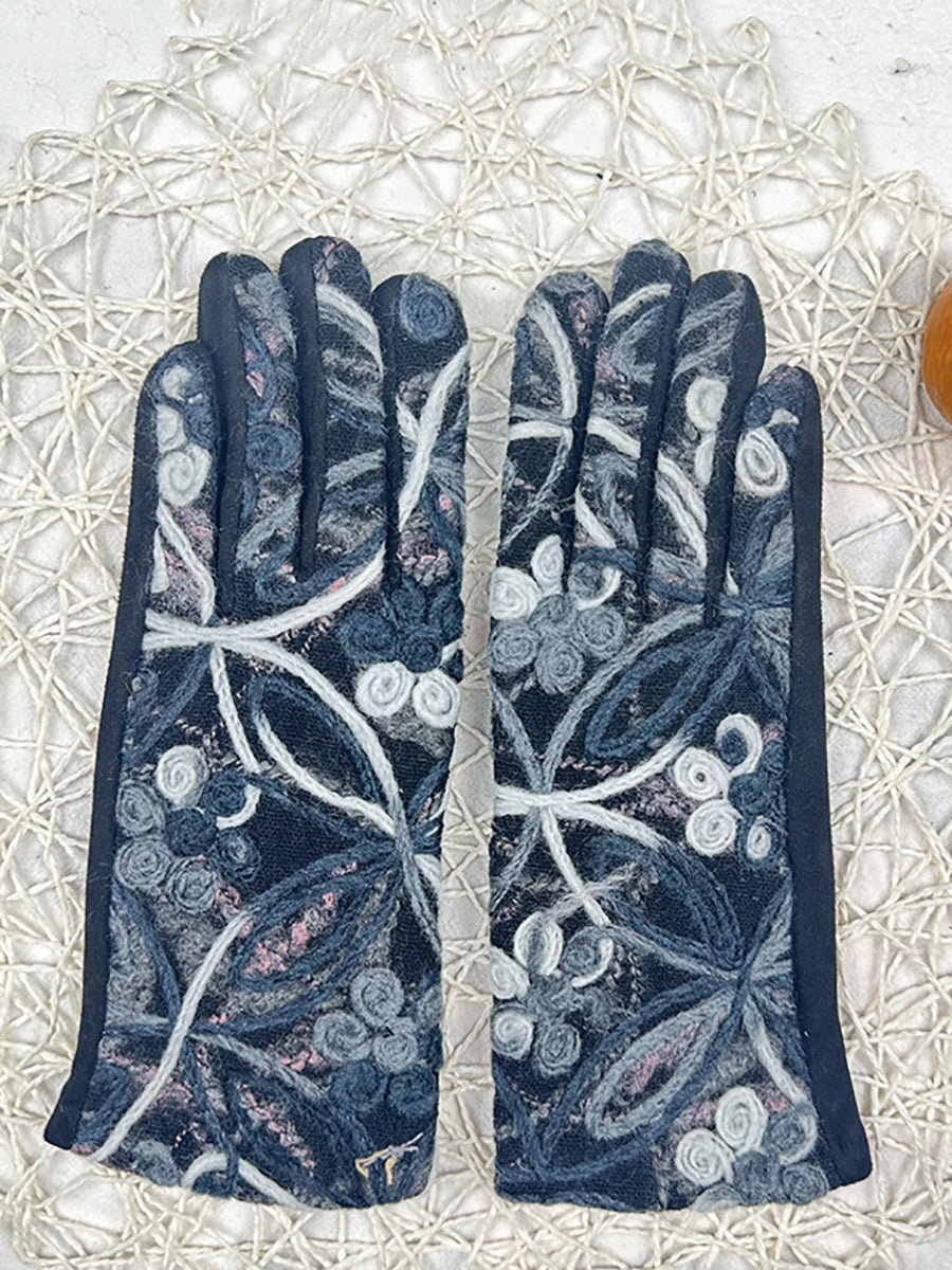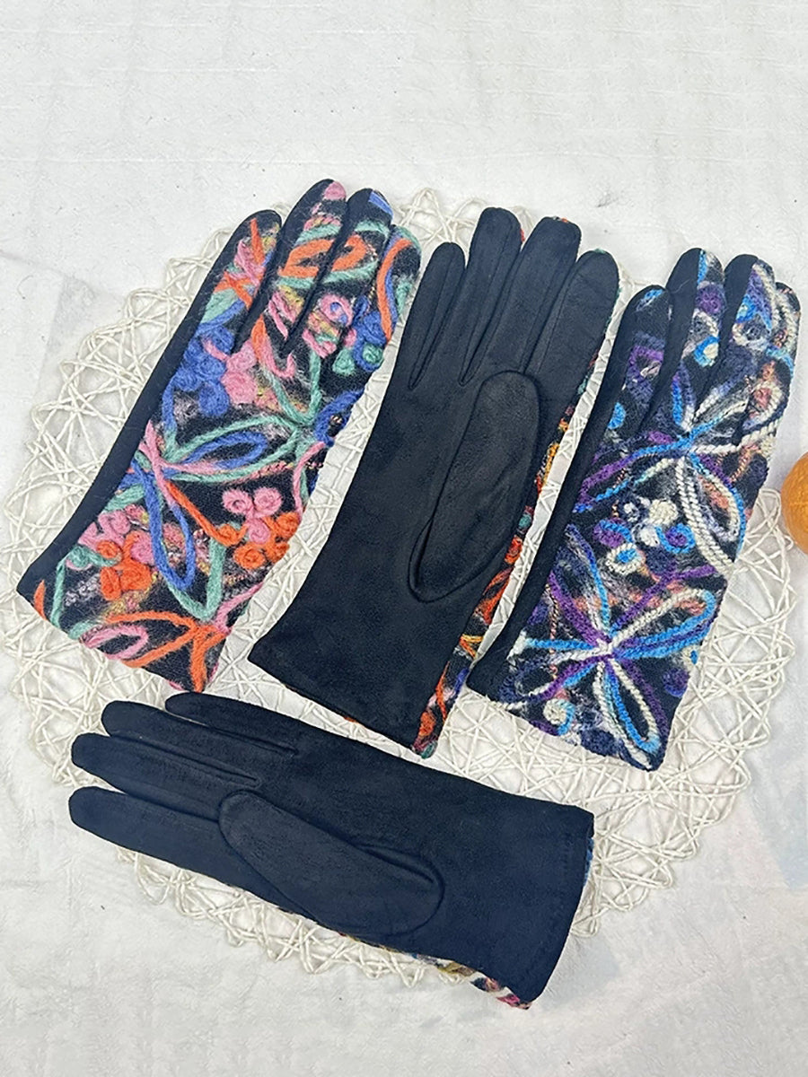 Women Ethnic Flower Knitted Warm Cycling Gloves