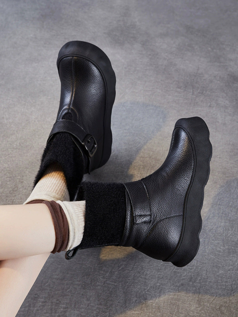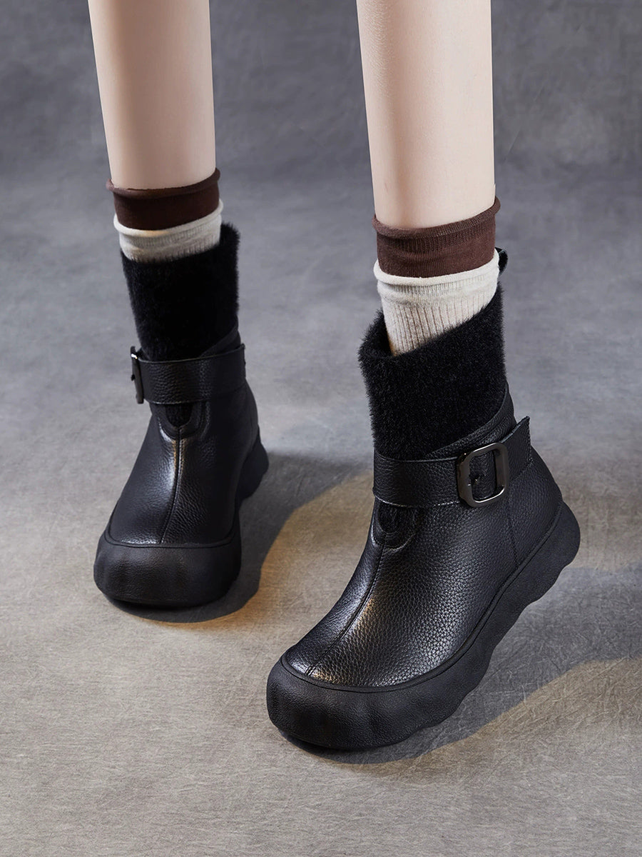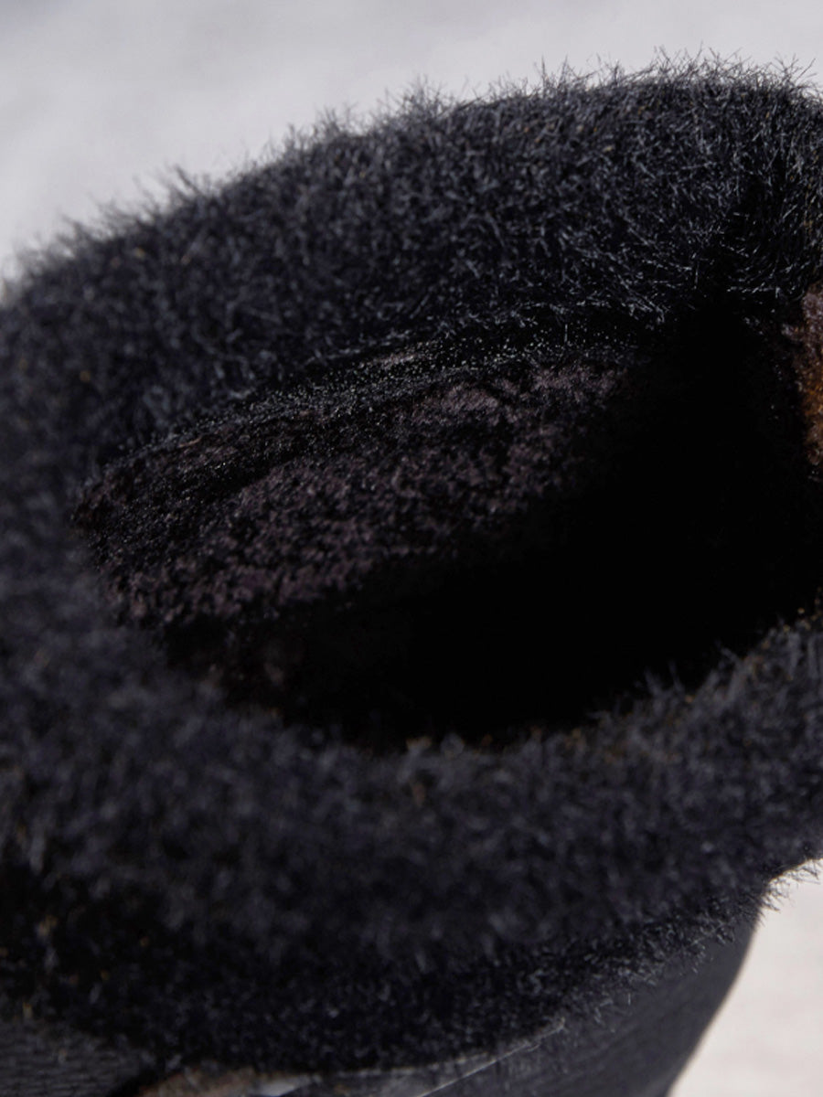 Women Winter Genuine Leather Spliced Fleece-lined Boots