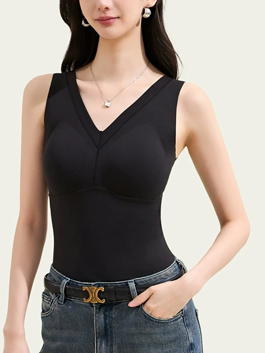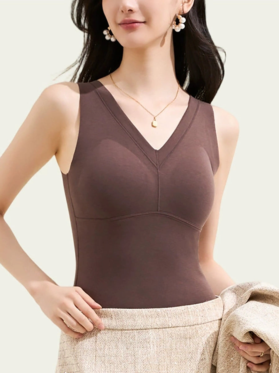 Women Winter Warm Pure Color With Bar Pads Base Vest