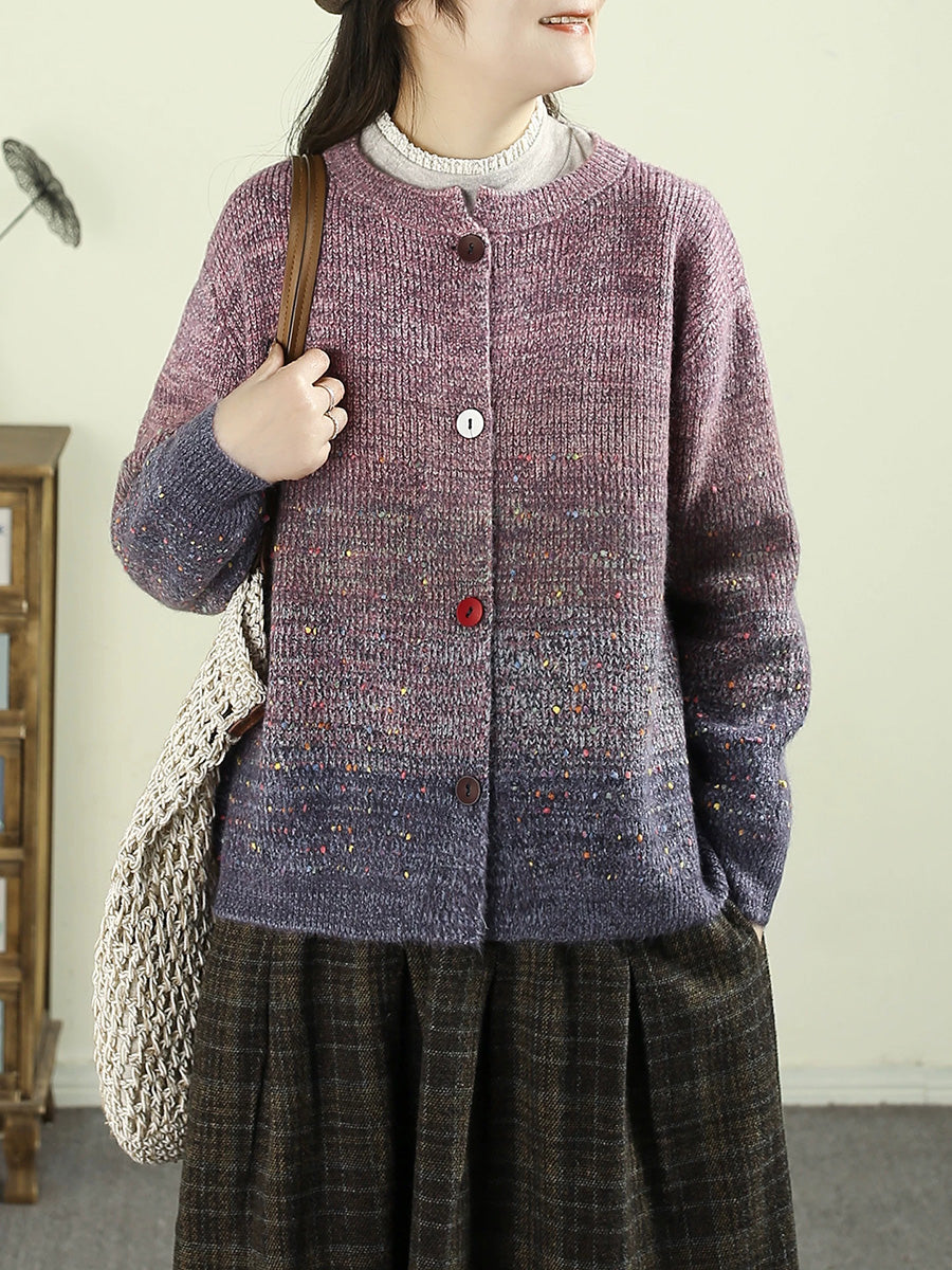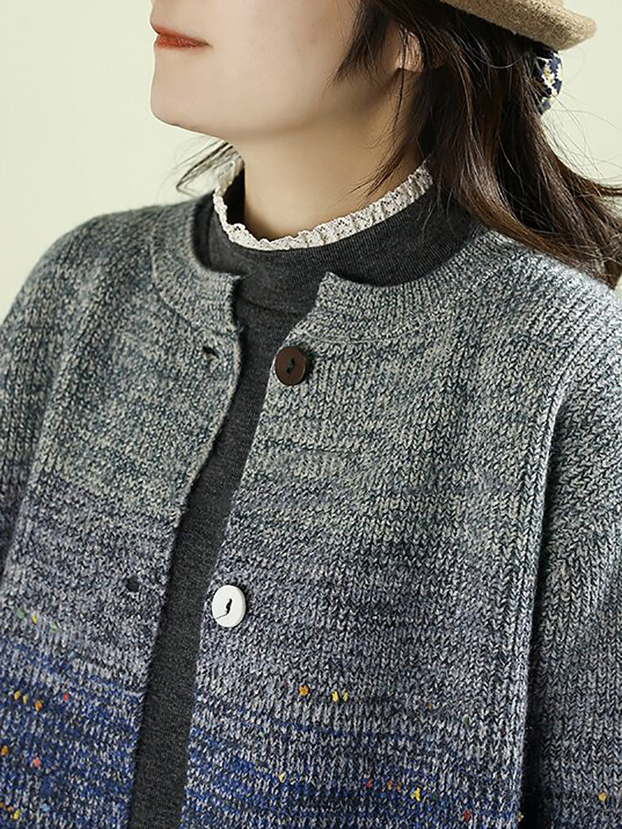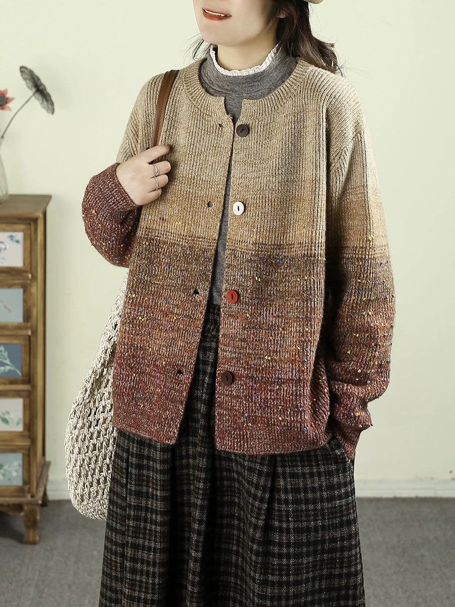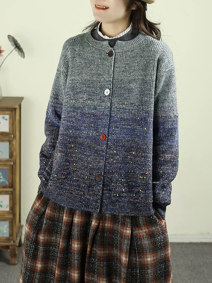 Women Autumn Artsy Gradient O-Neck Cardigan Sweater