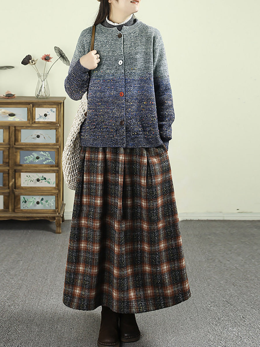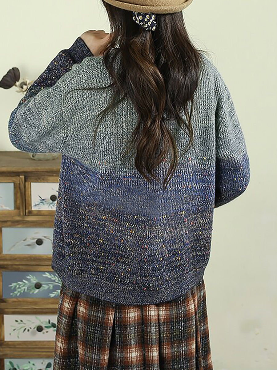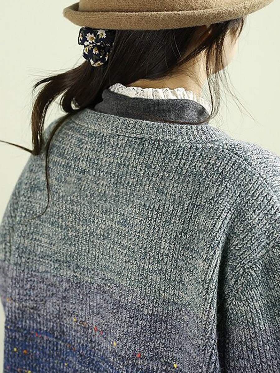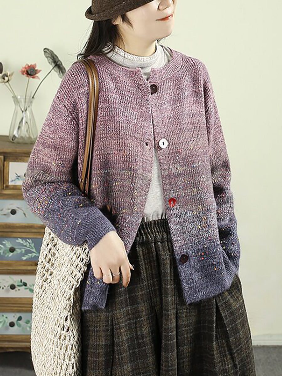 Women Autumn Artsy Gradient O-Neck Cardigan Sweater
