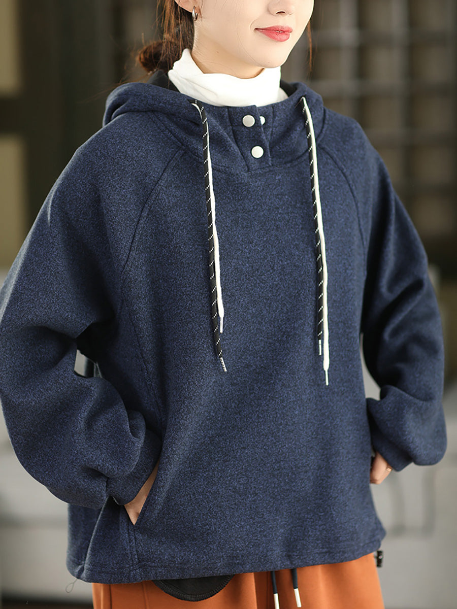 Stay warm and comfortable through cooler months with this versatile hooded blouse. Featuring a classic solid color design and cozy fleece lining, it delivers practical warmth without compromising style. The raglan sleeves provide an easy, relaxed fit perfect for layering or wearing solo, while the full-length coverage keeps you protected from the elements. An ideal transitional piece for autumn and winter wardrobes that balances casual elegance with functional comfort.