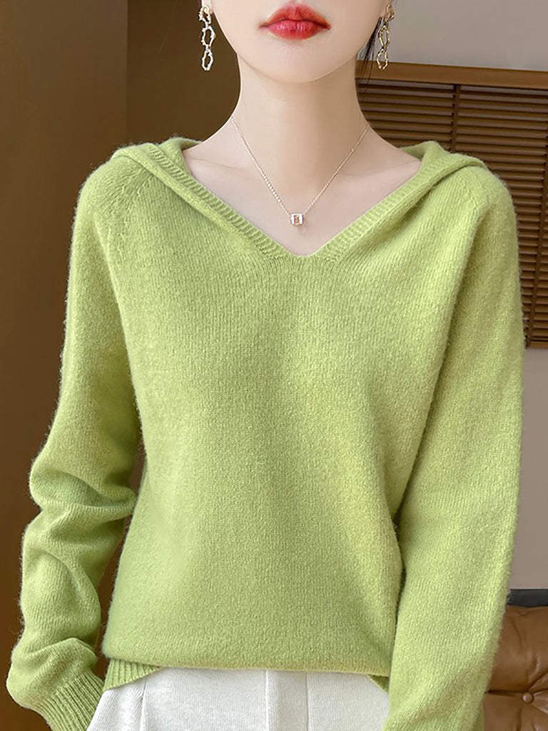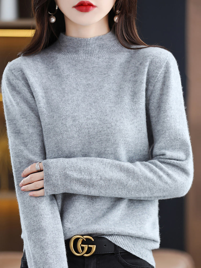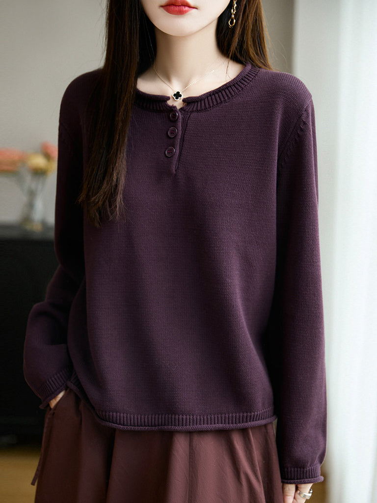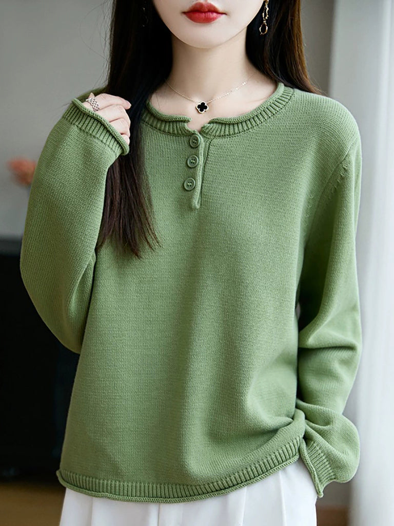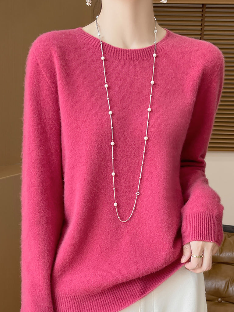 Women Winter Pure Color O-Neck Knitted 100%Cotton Sweater