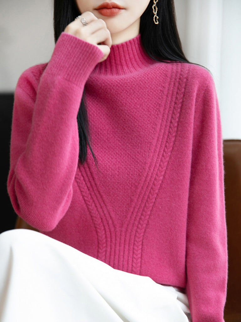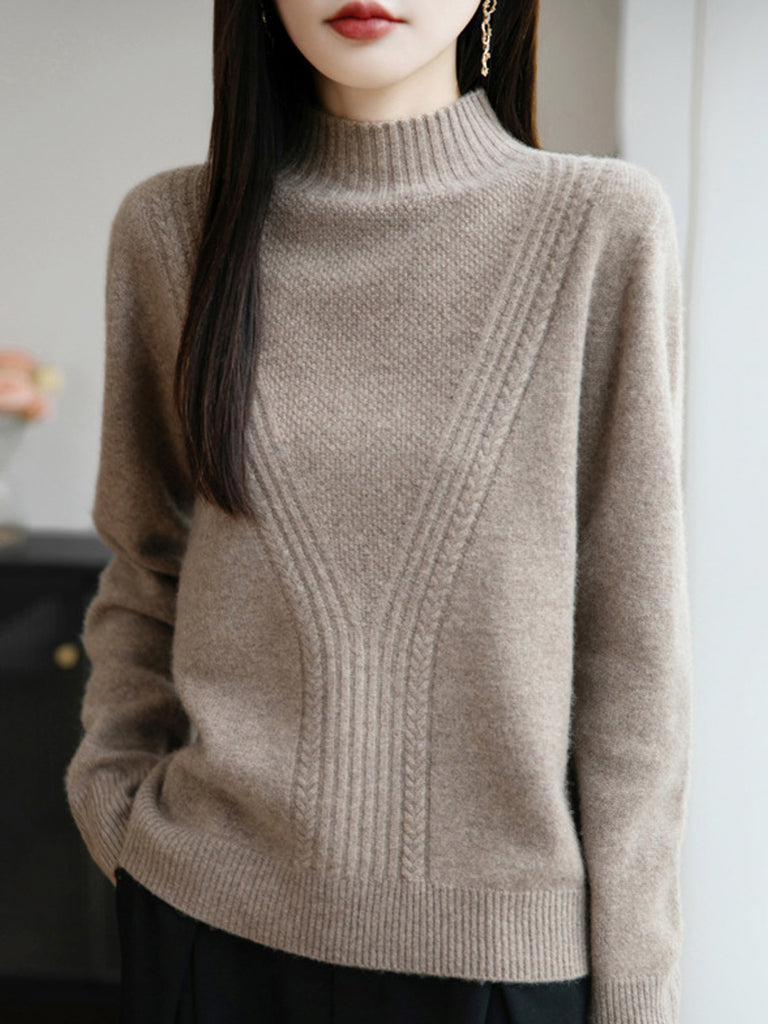 Women Autumn Artsy Colorblock Half-Turtleneck Sweater
