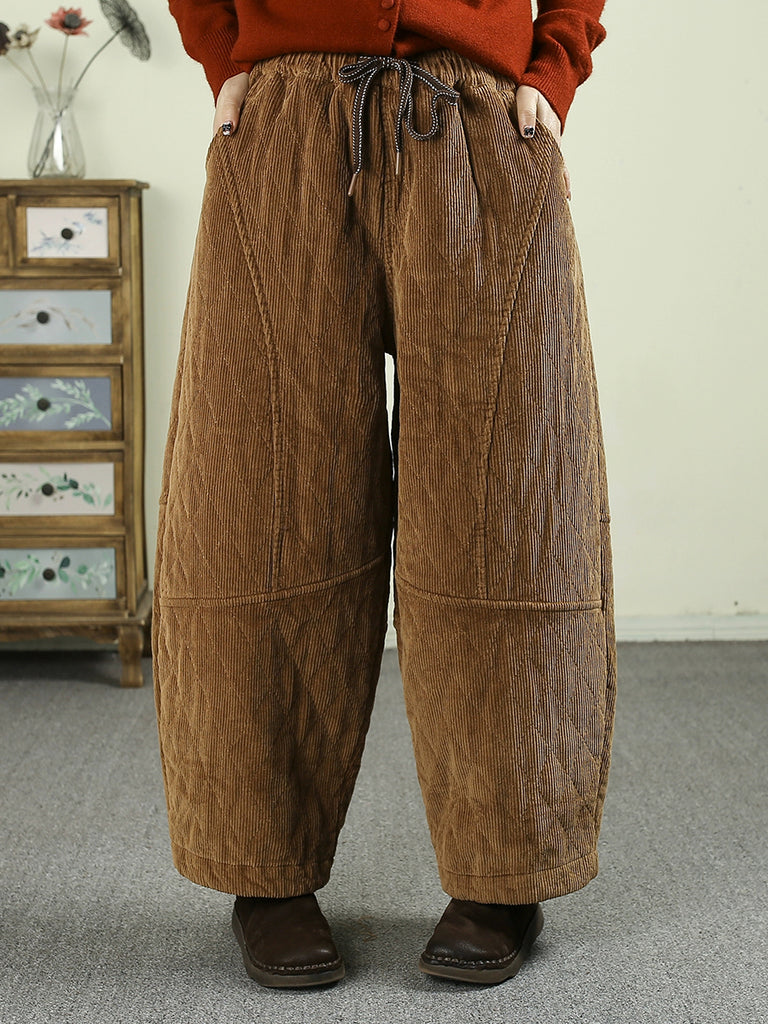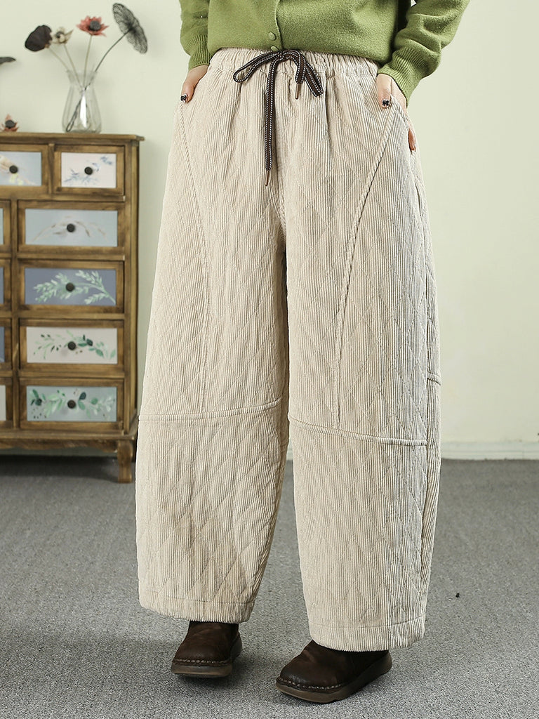 Women Winter Retro Corduroy Padded Wide-leg Pants