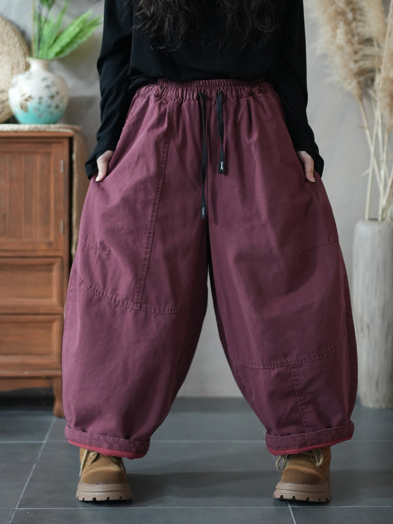 Women Winter Retro Pure Color Corduroy Padded Harem Pants