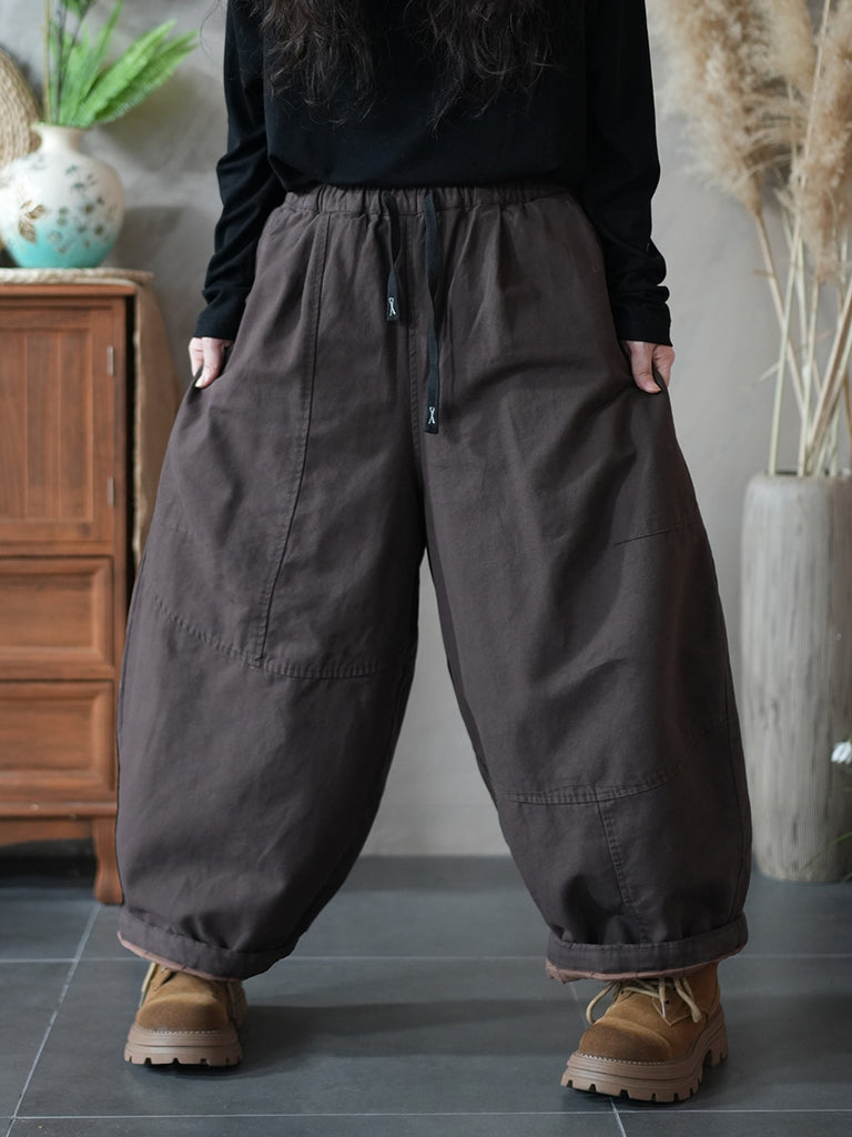 Women Winter Ethnic Pure Color Padded Straight Pants