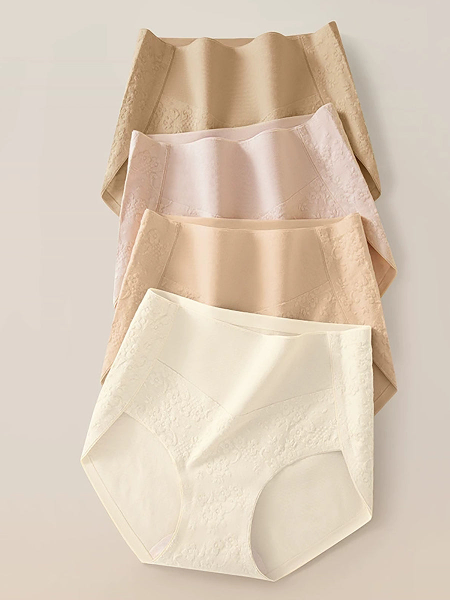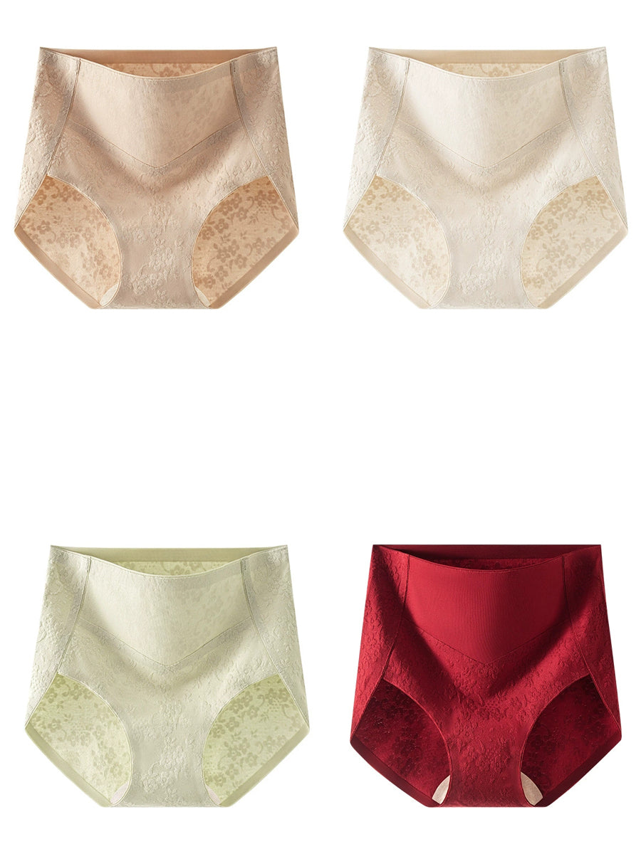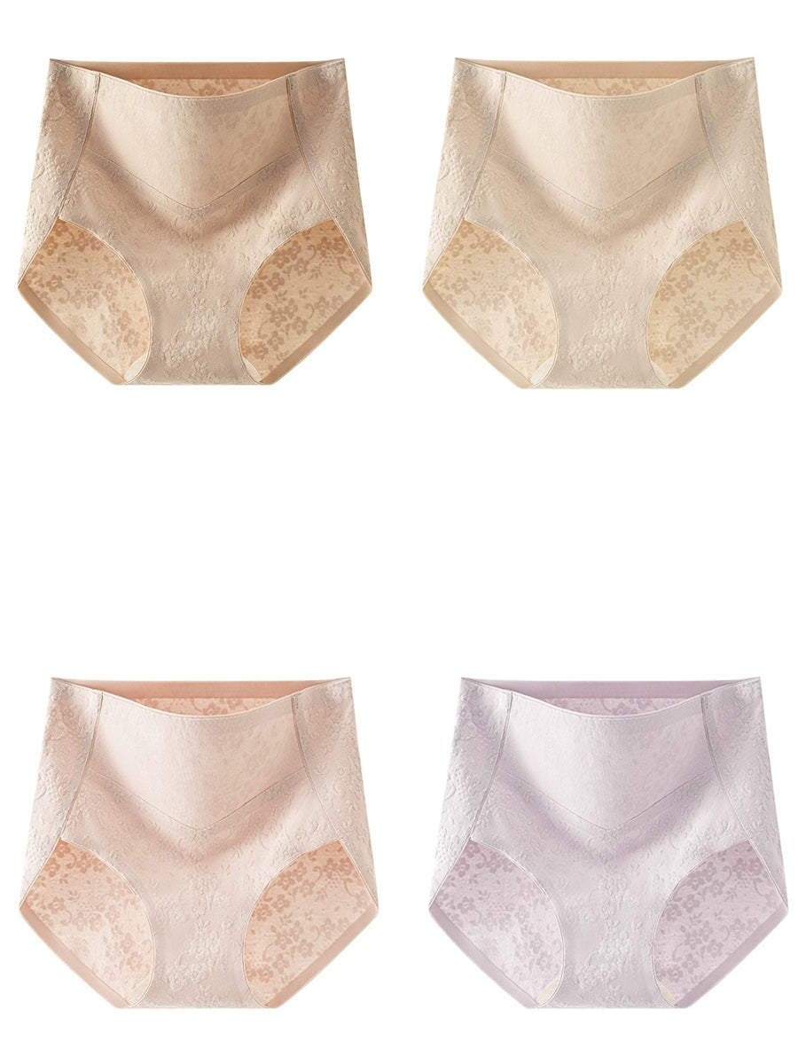 4 Pieces Women Artsy Jacquard High Waist Underwear