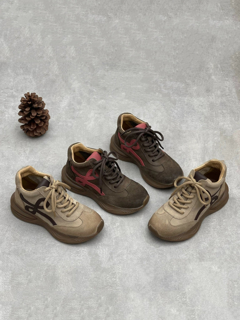 Women Retro Genuine Leather Platform Low-Heel Boots