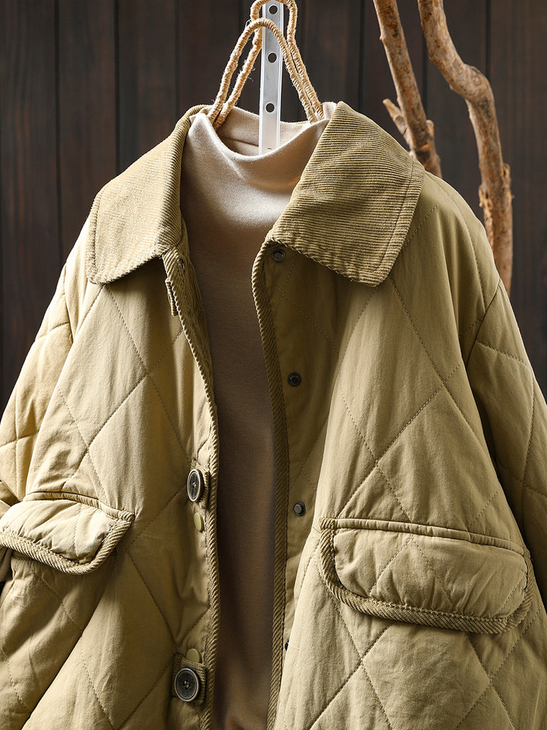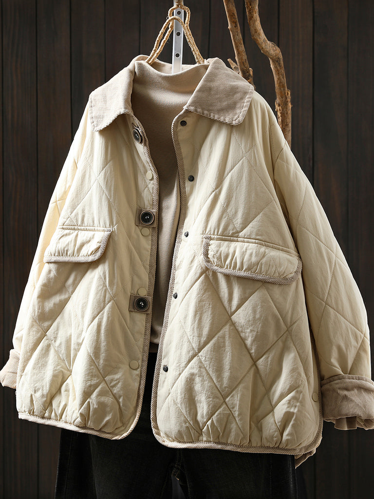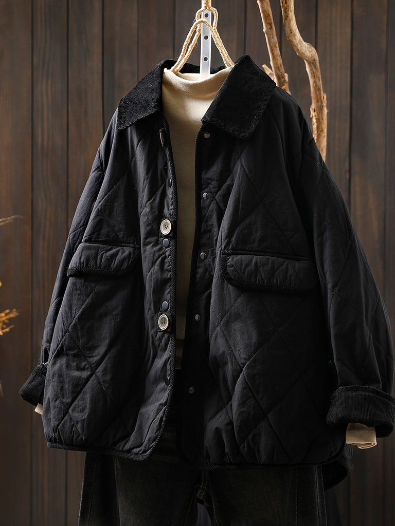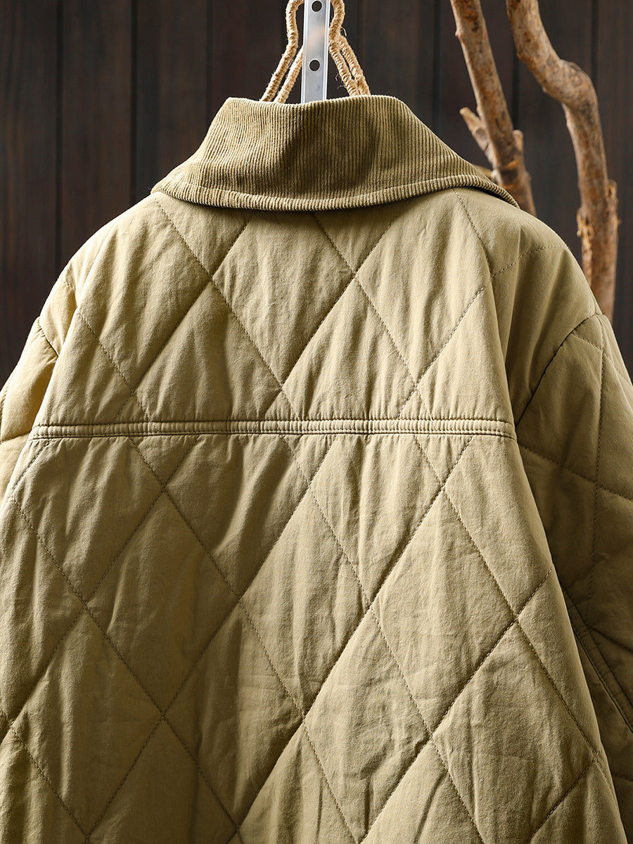 Women Winter Retro Pure Color Turn-down Collar Padded Coat