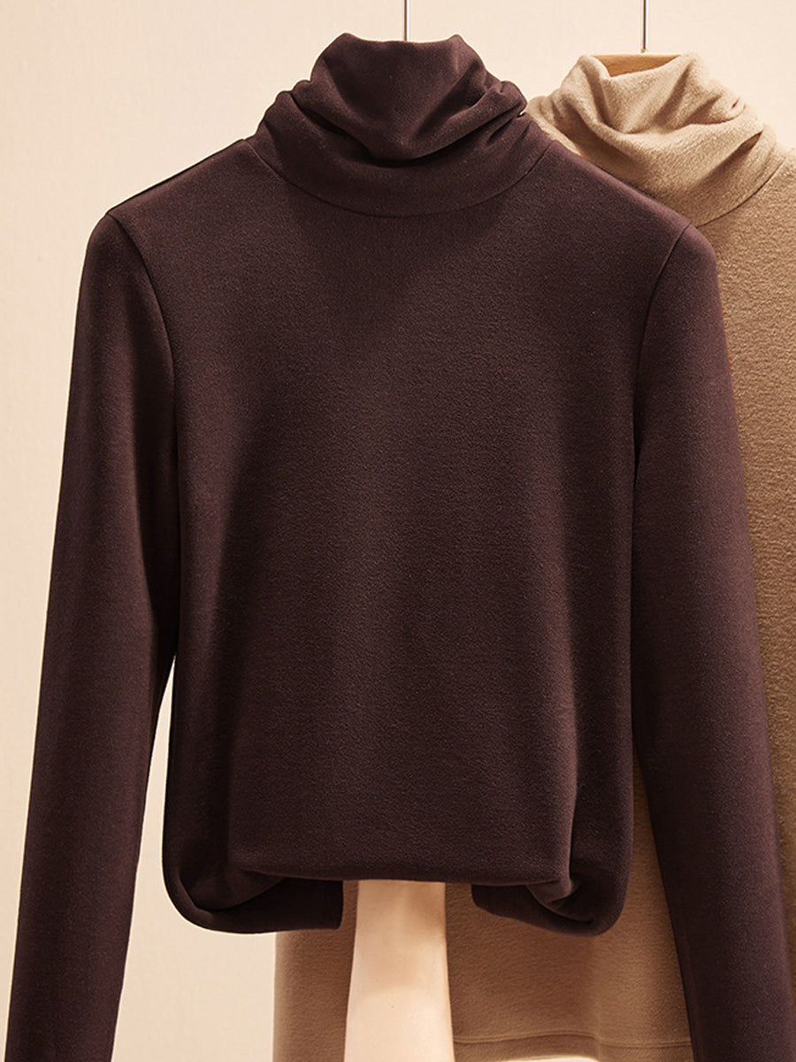 Women Winter Pure Color Turtleneck Bottom Blouse
