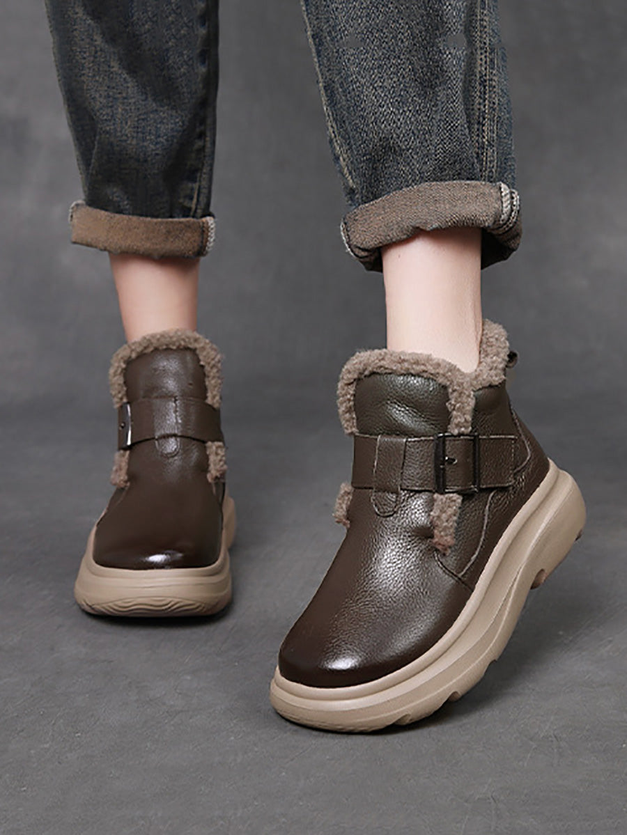 Women Winter Genuine Leather Fleece-lined Ankle Boots