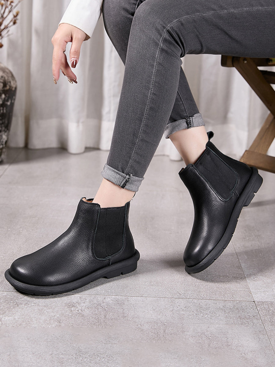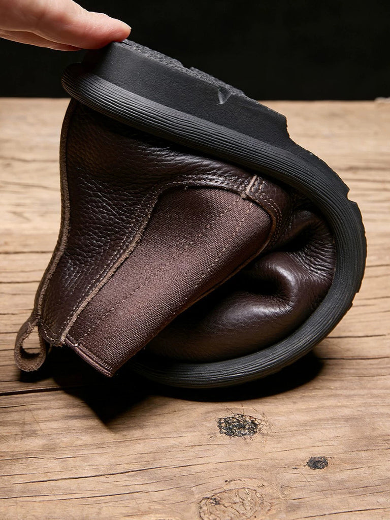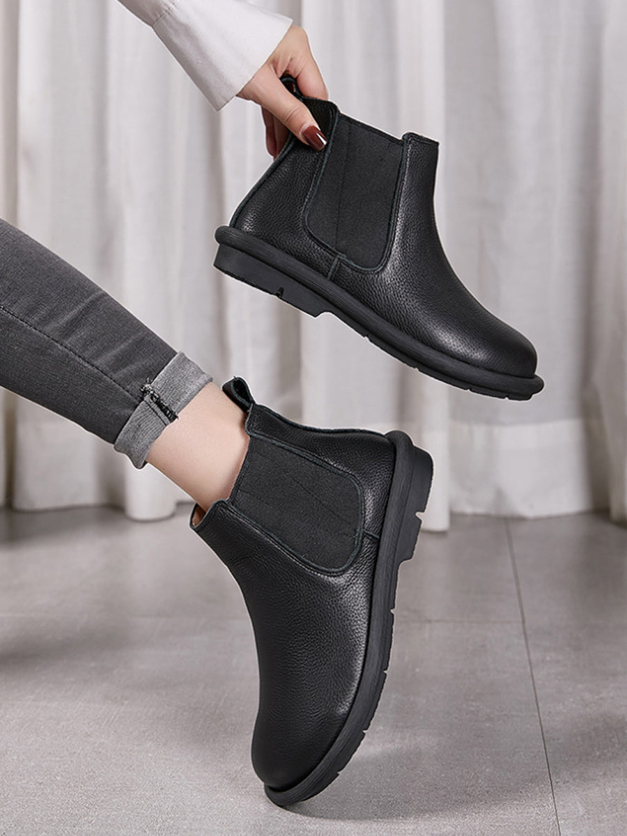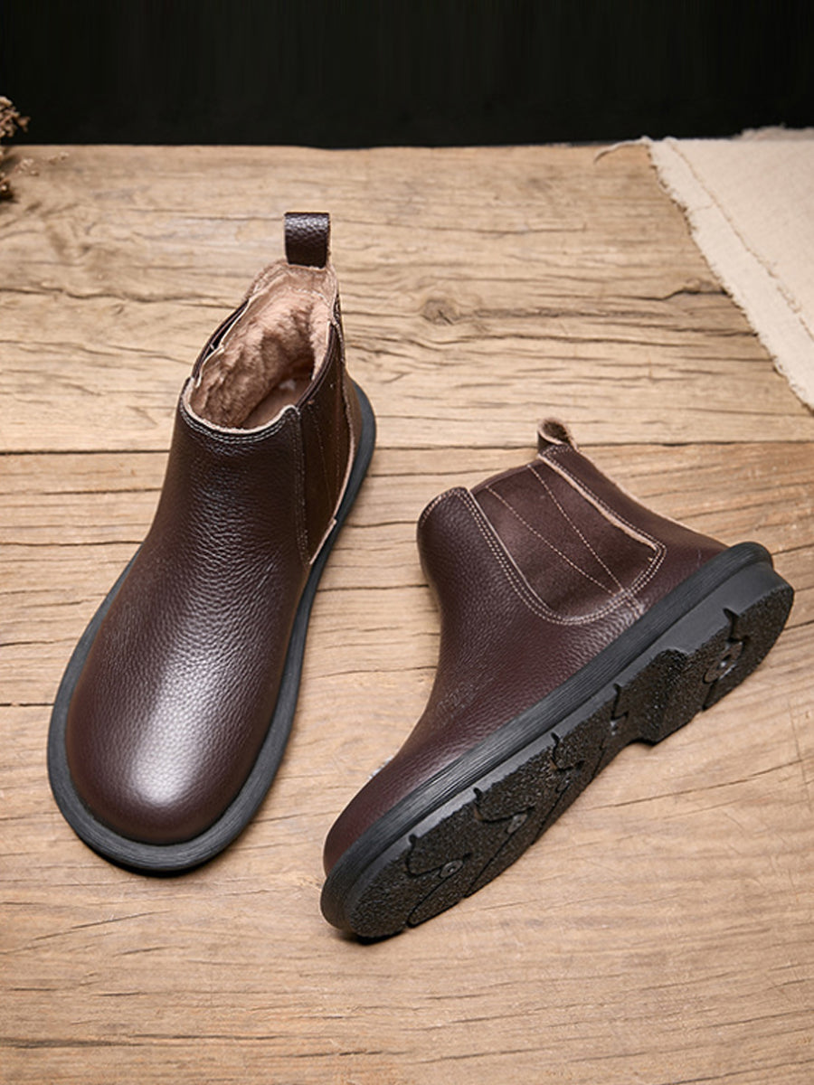 Women Winter Genuine Leather Fleece-lined Chelsea Boots