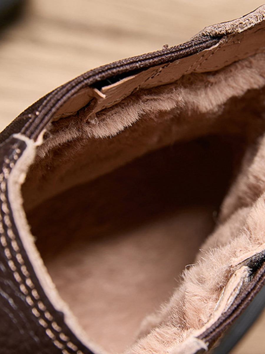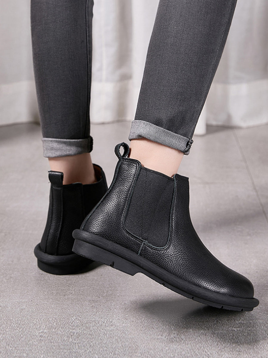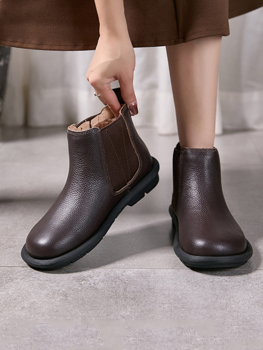 Women Winter Genuine Leather Fleece-lined Chelsea Boots