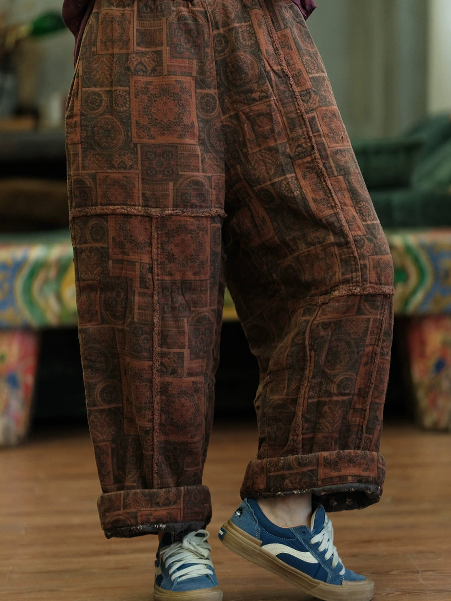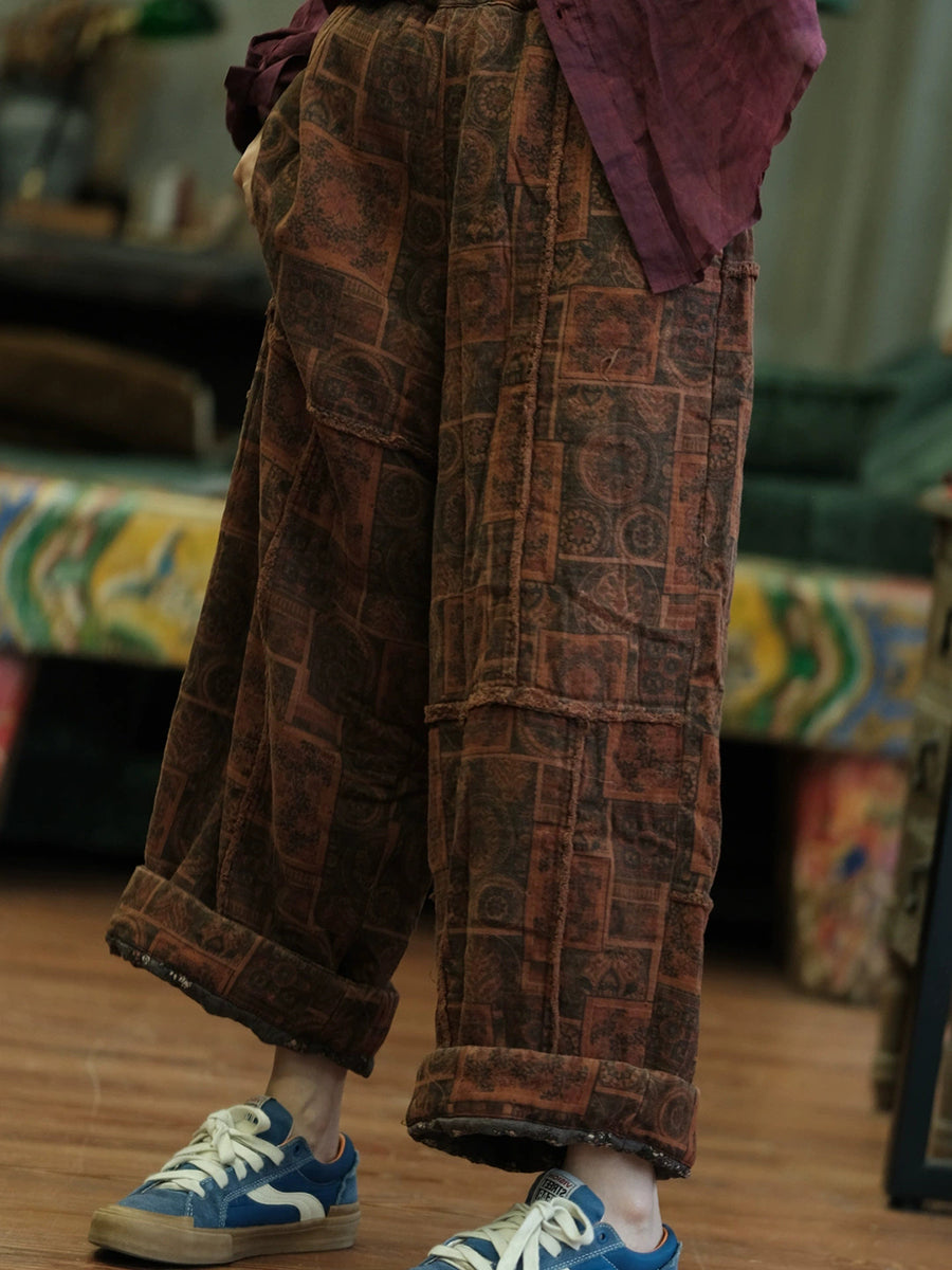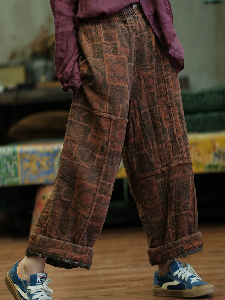 Women Autumn Retro Spliced Cotton Wide-leg Pants