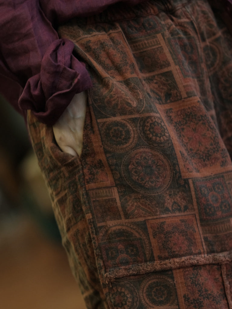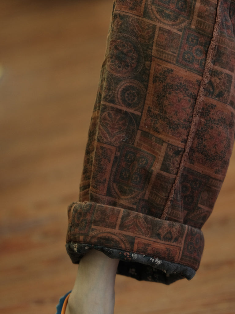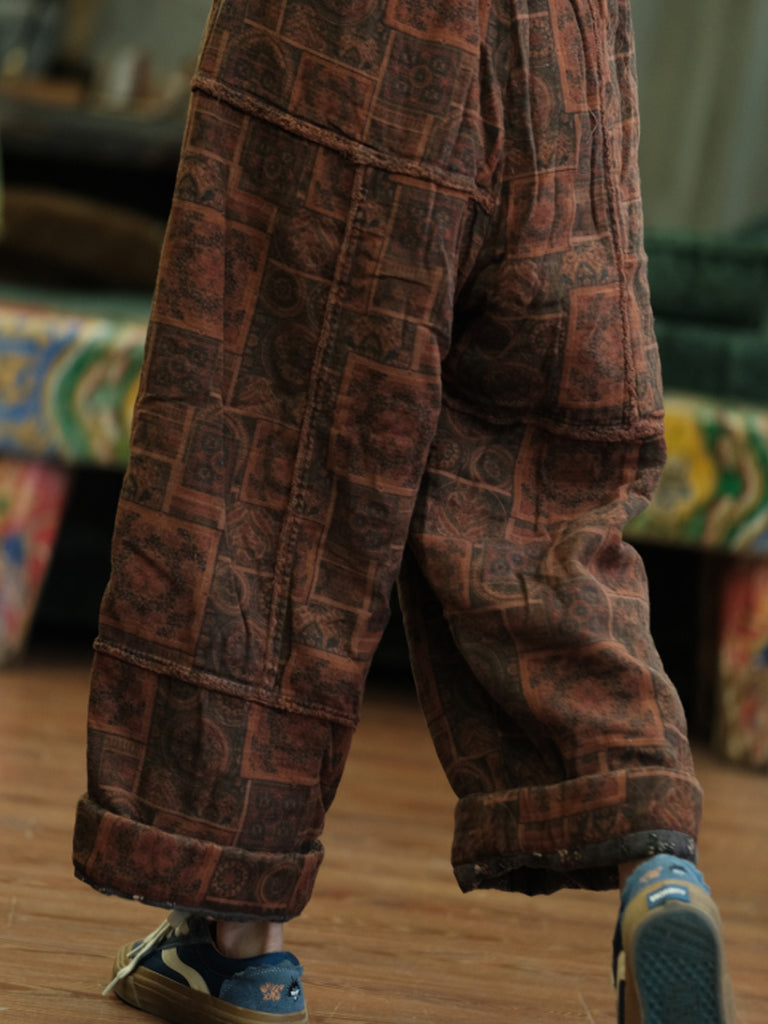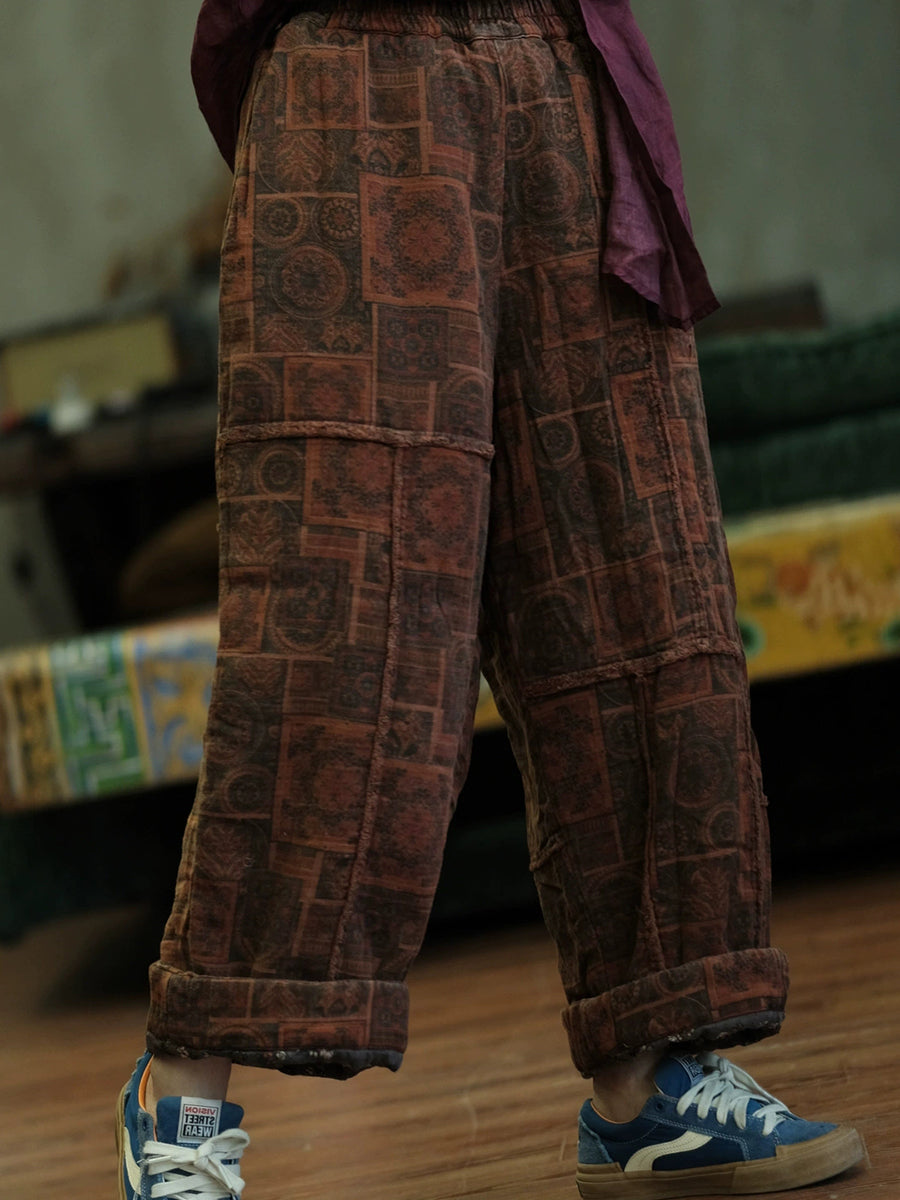 Women Autumn Retro Spliced Cotton Wide-leg Pants