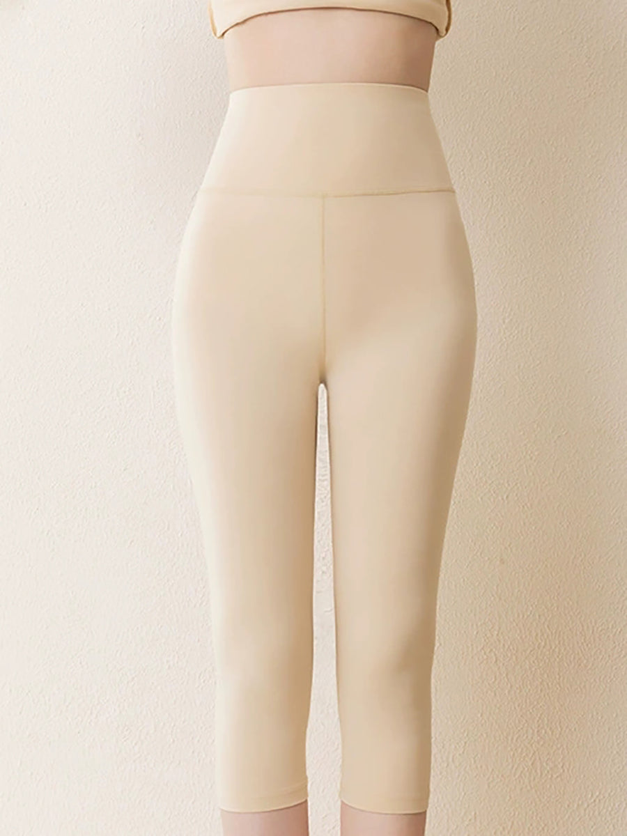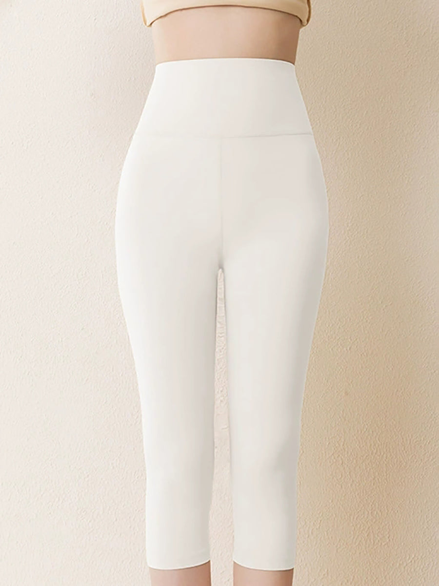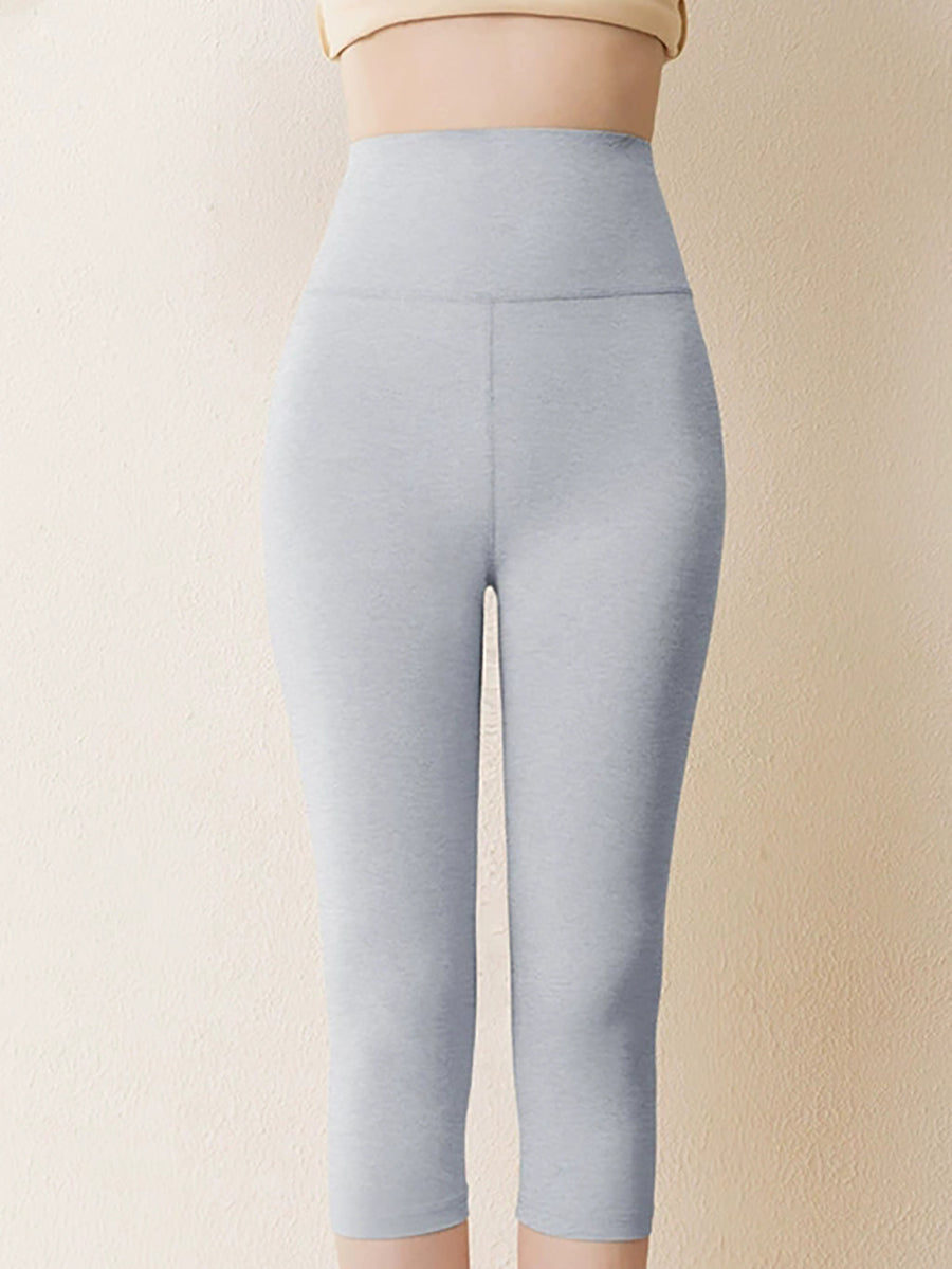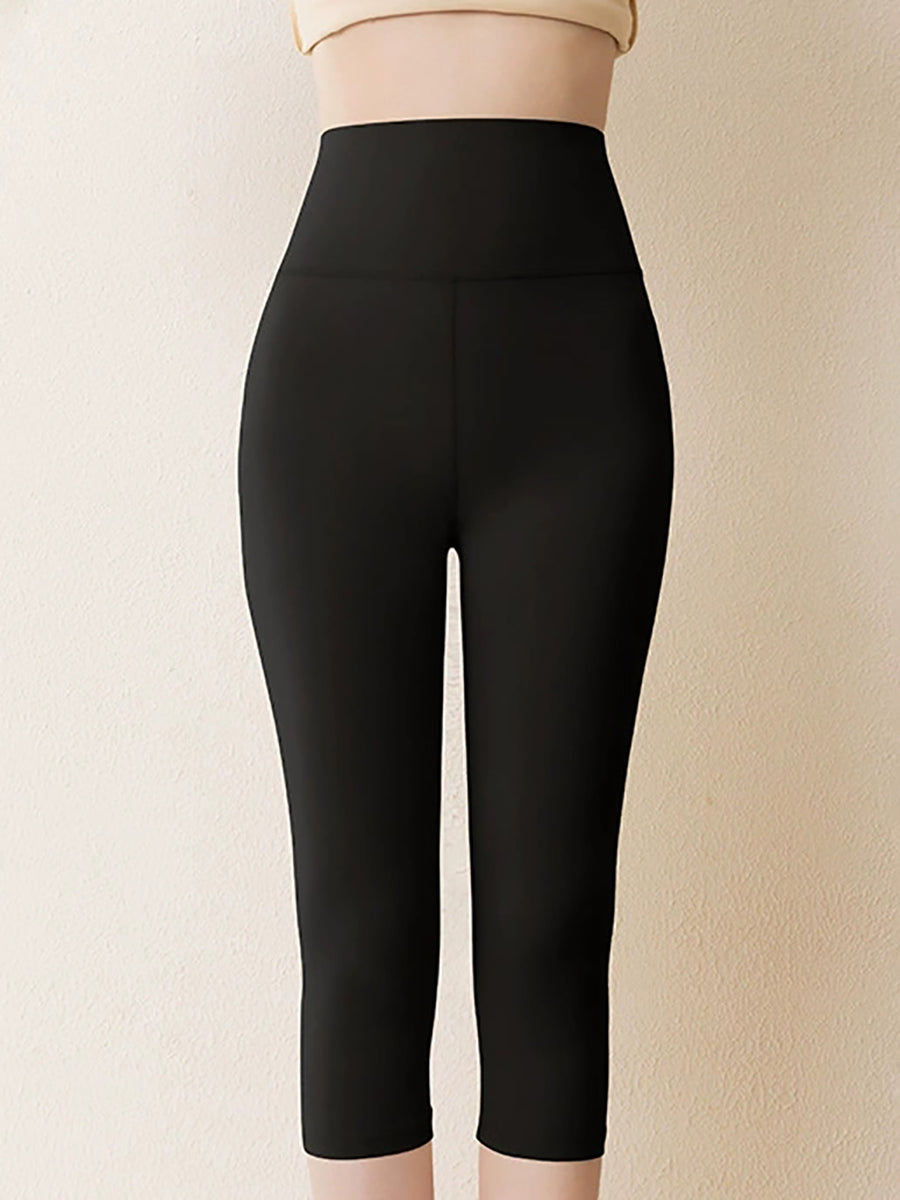 Women Winter Warm Pure Color Capri Leggings