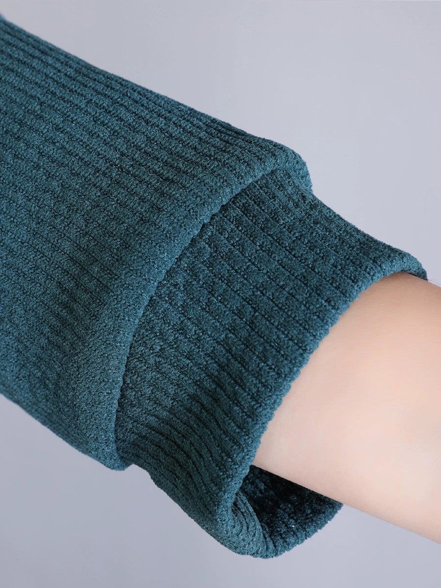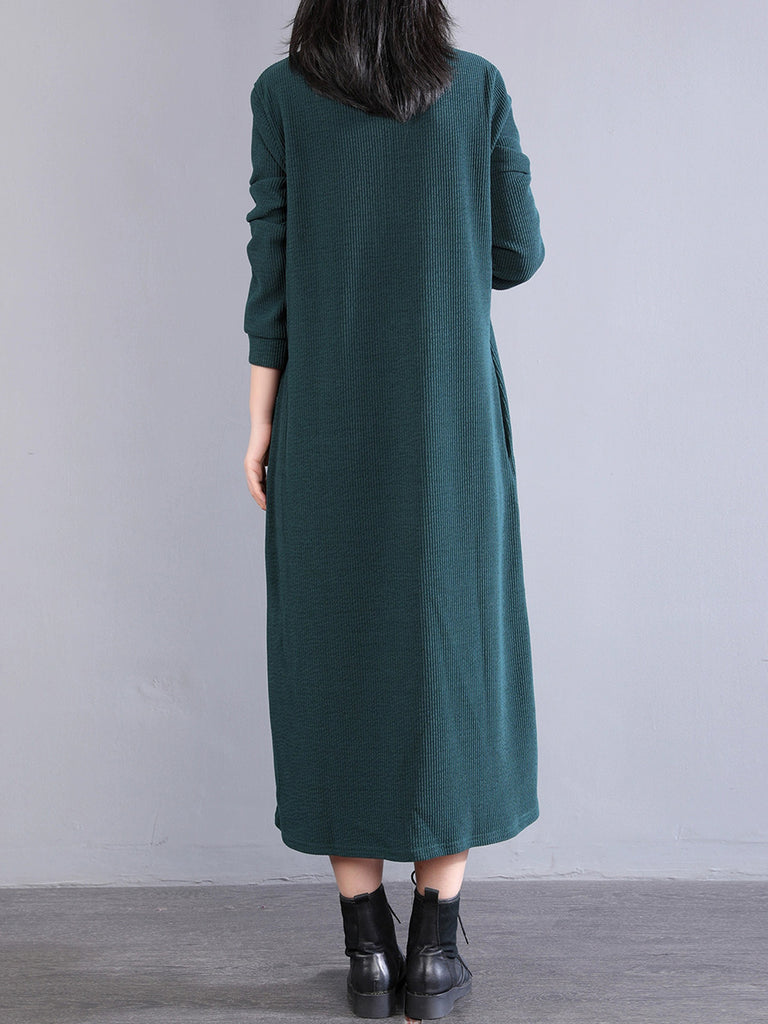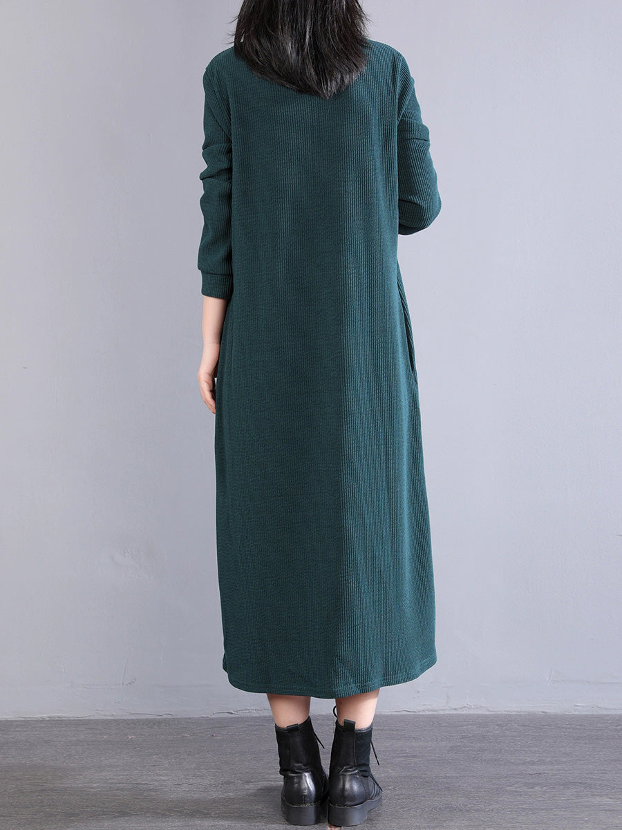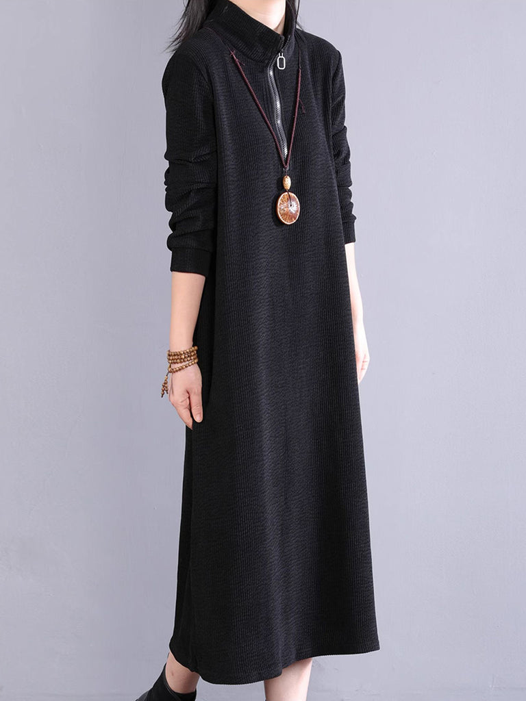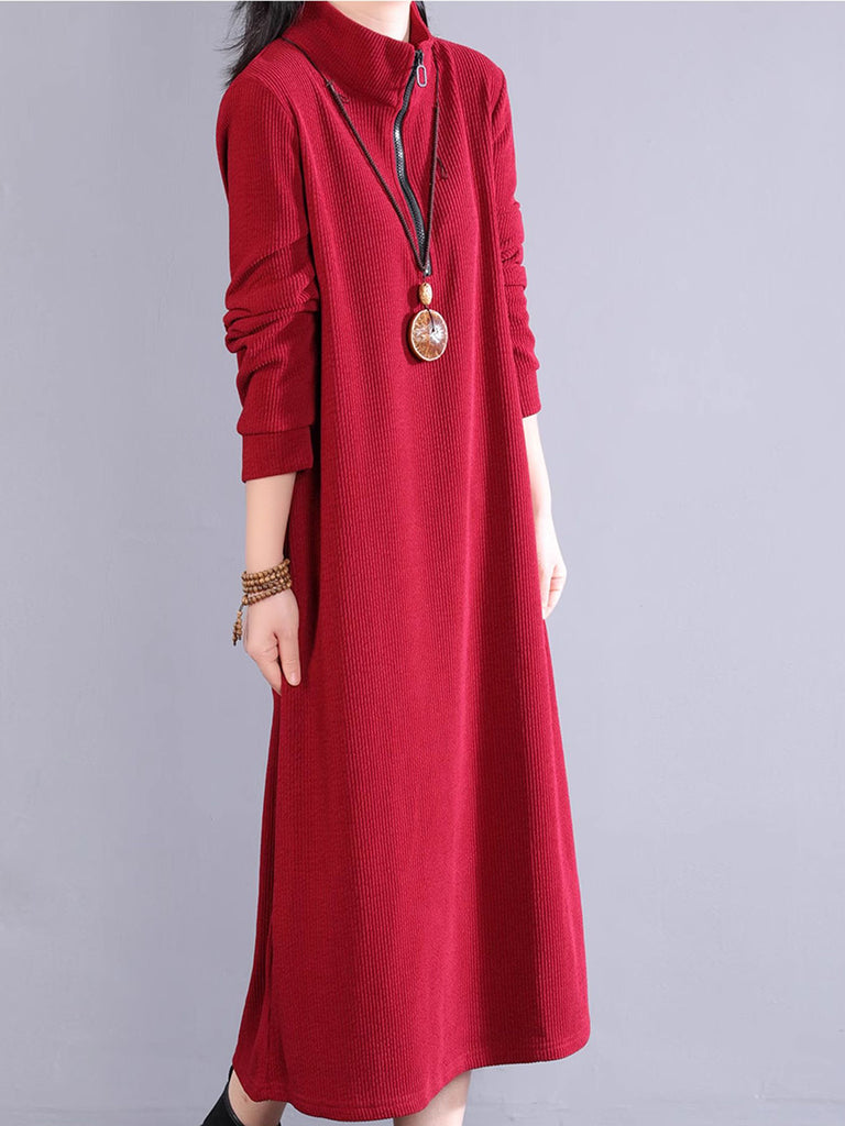 Women Autumn Pure Color 100%Cotton Stand Collar Dress