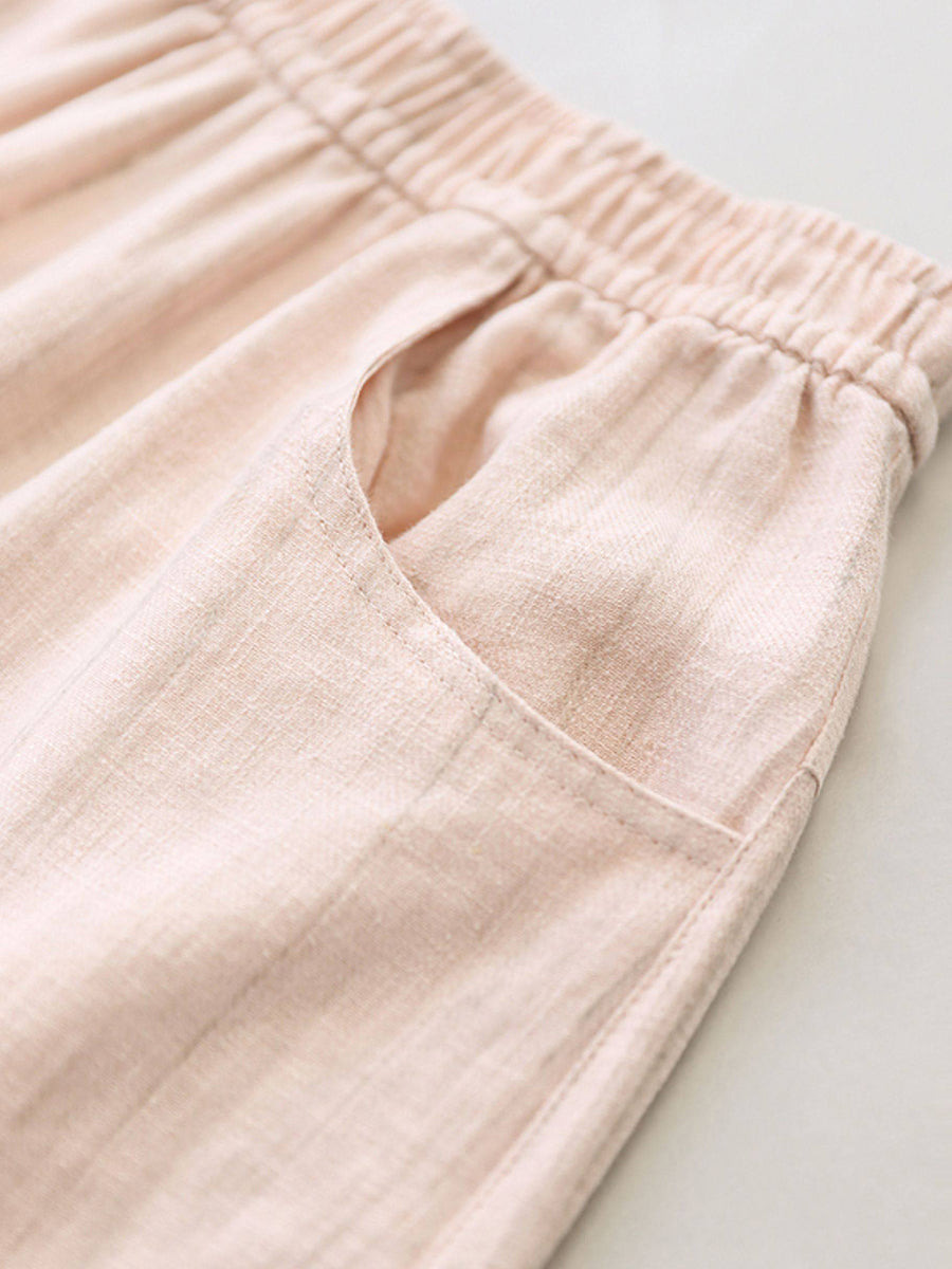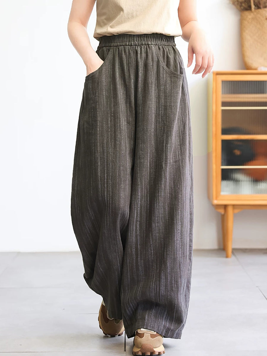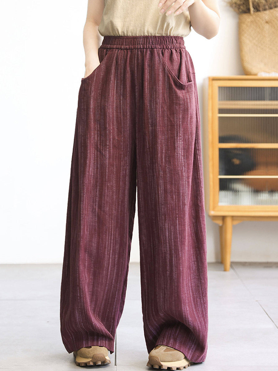 Women Spring Stripe 100%Linen Straight Pants
