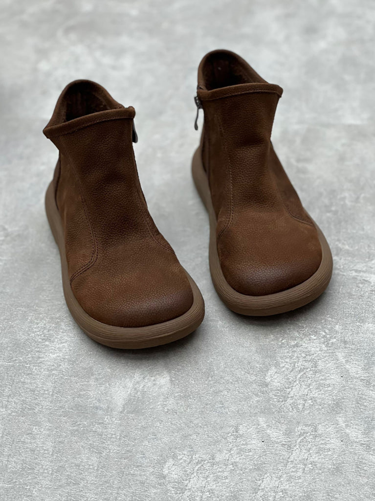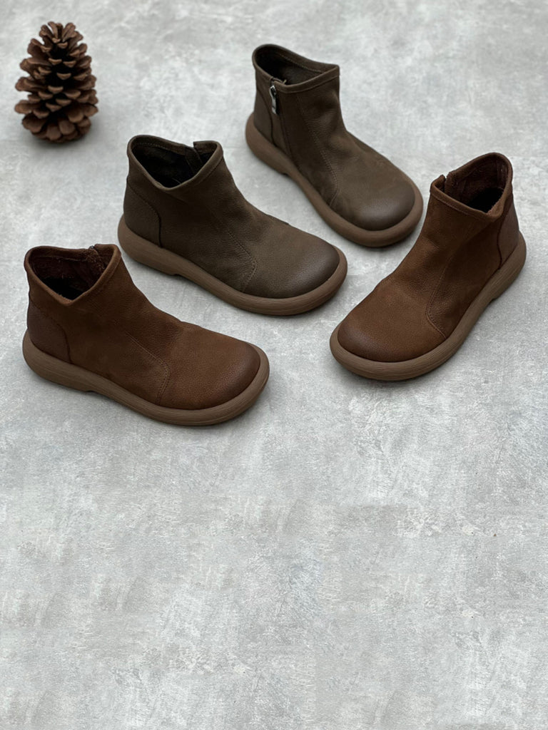 Women Winter Solid Soft Leather Zipper Flat Boots
