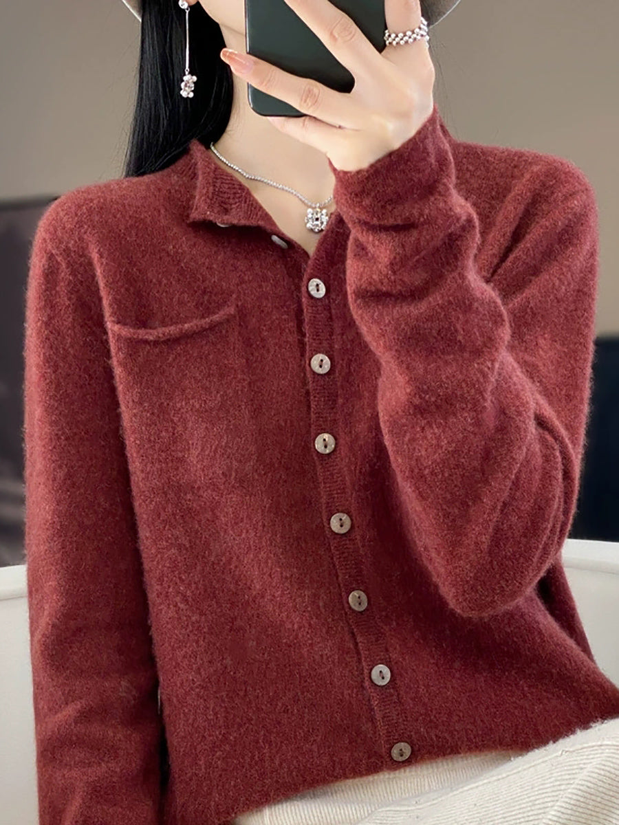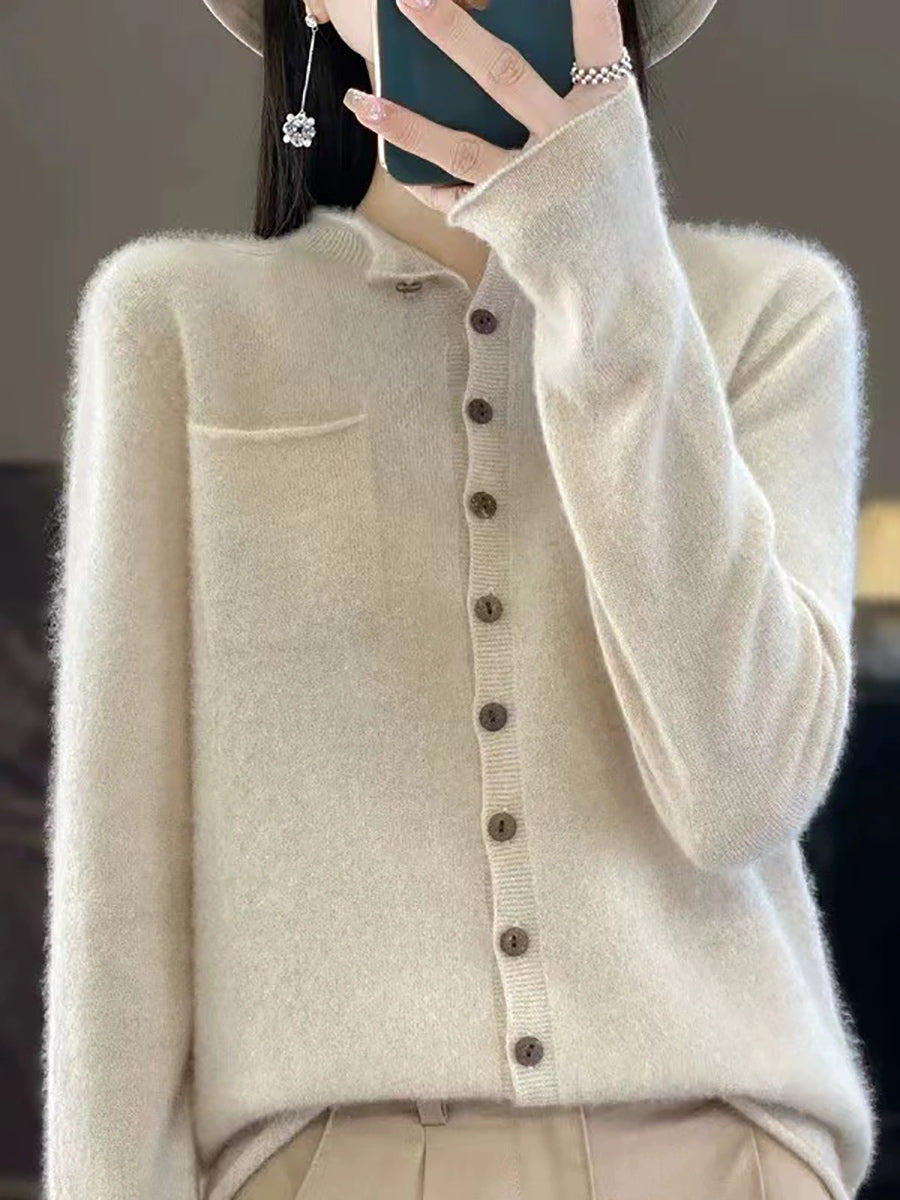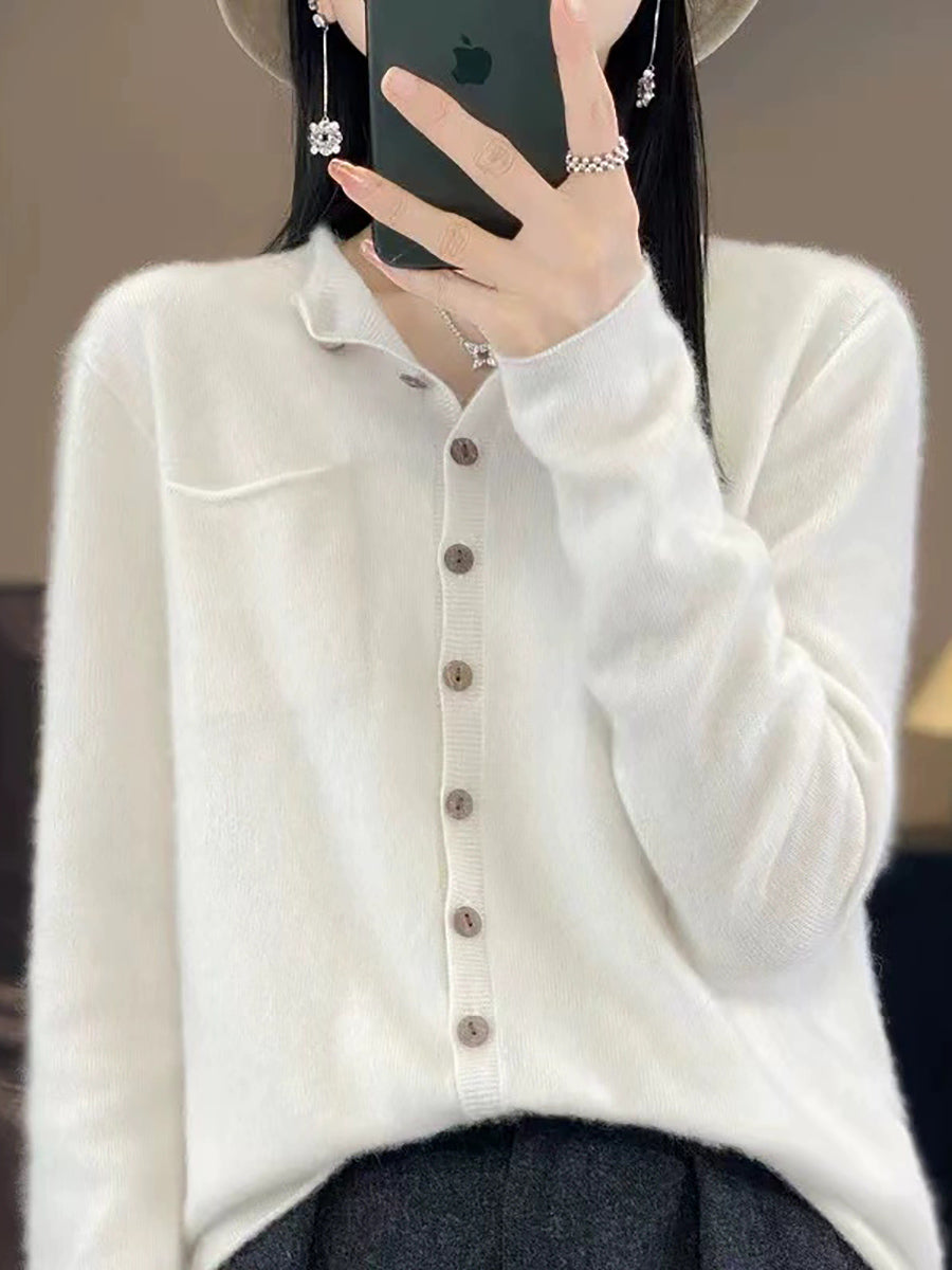 Women Spring Artsy Pure Color O-Neck Cardigan Sweater