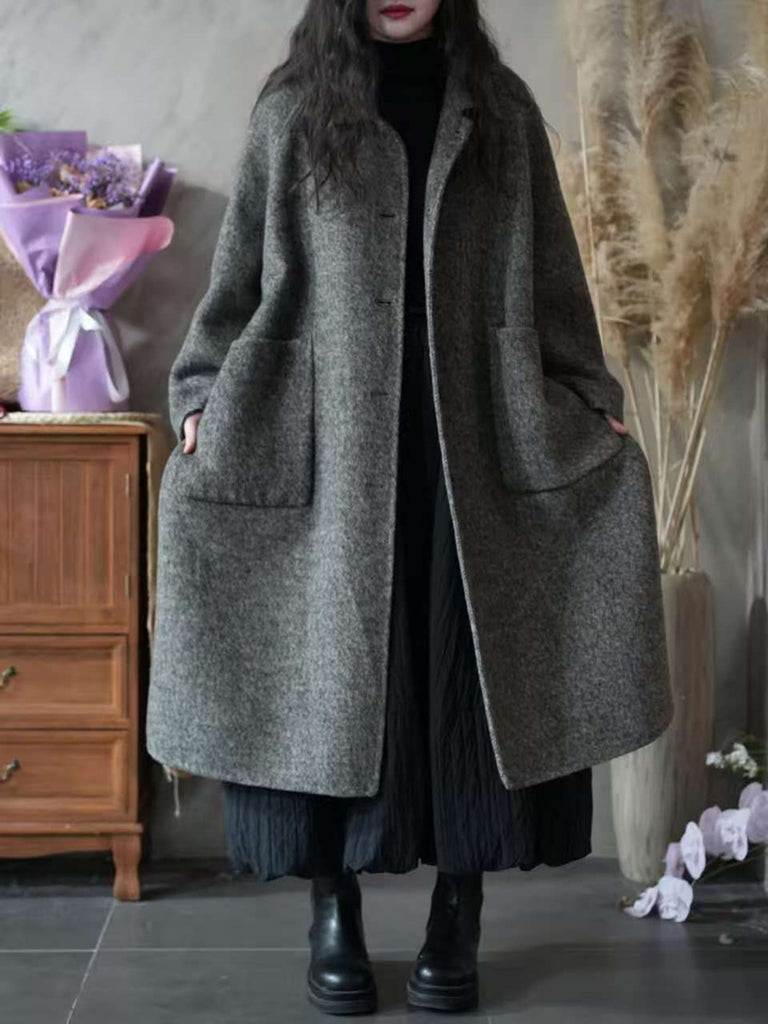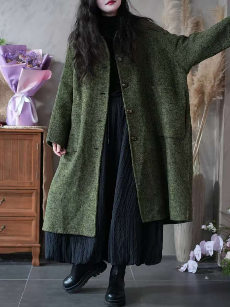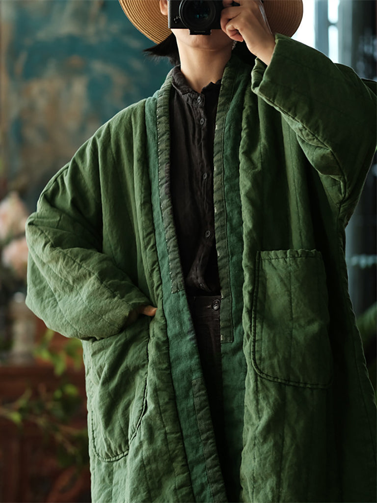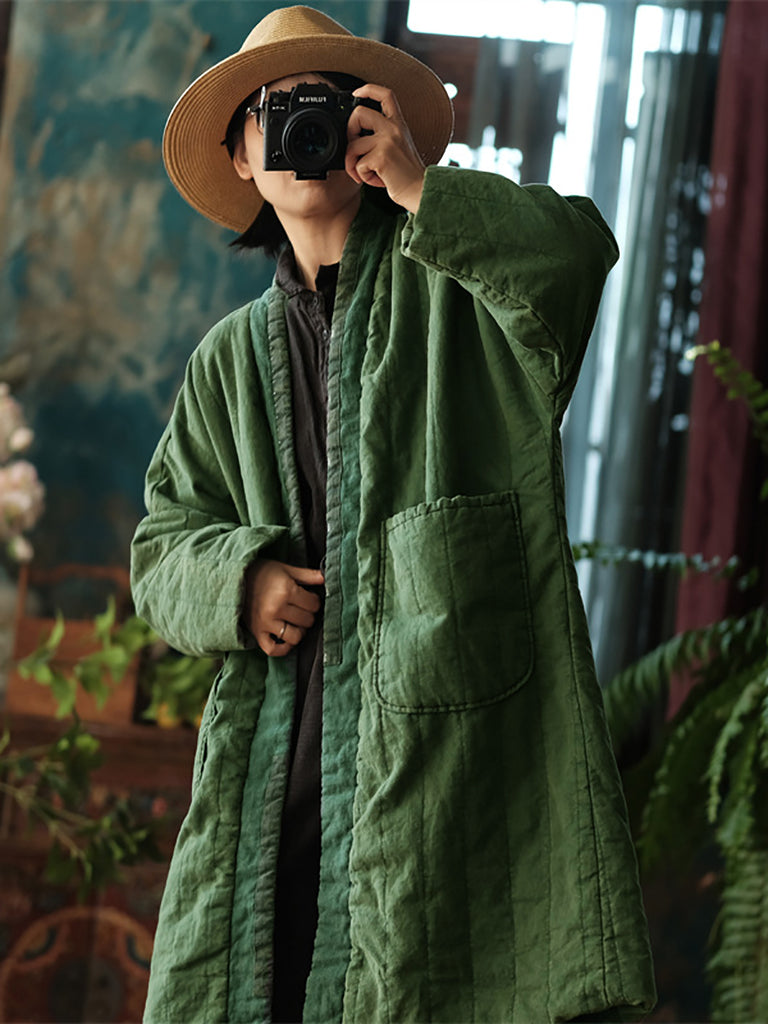 Plus Size Women Winter Vintage Colorblock Pocket Cotton Long Coat