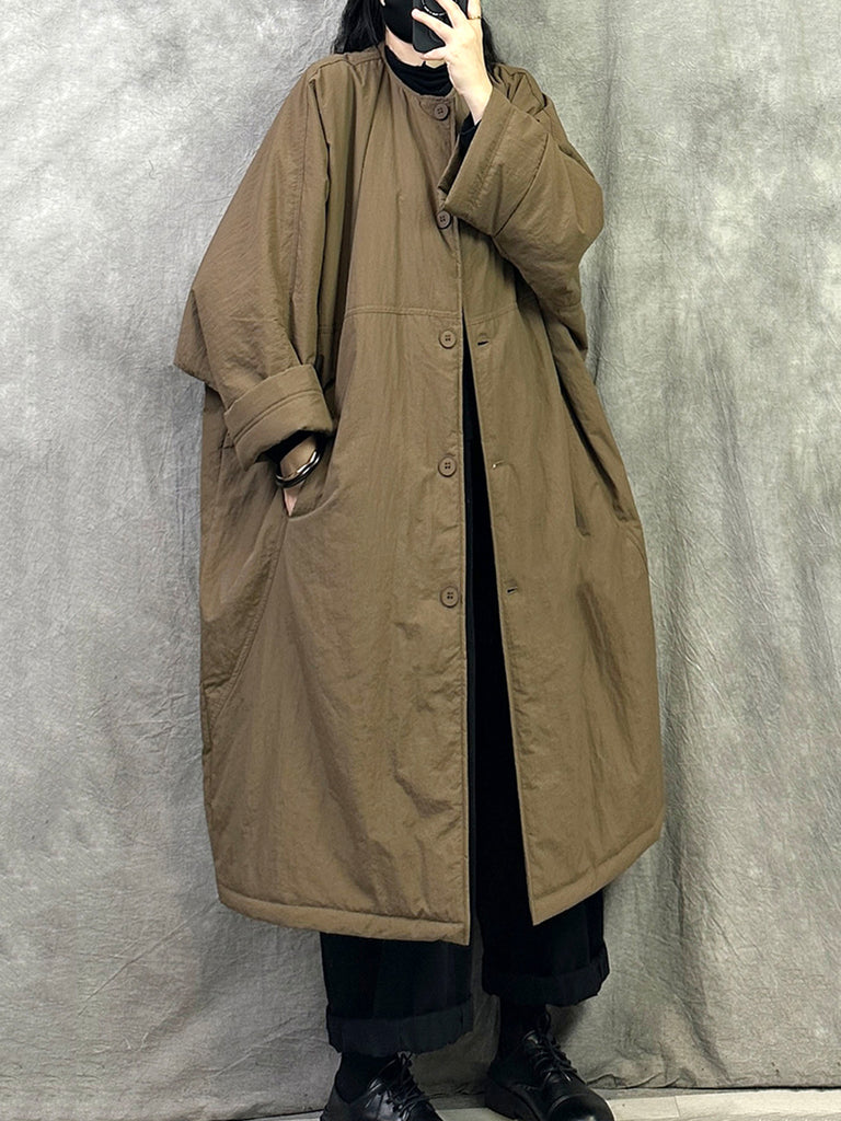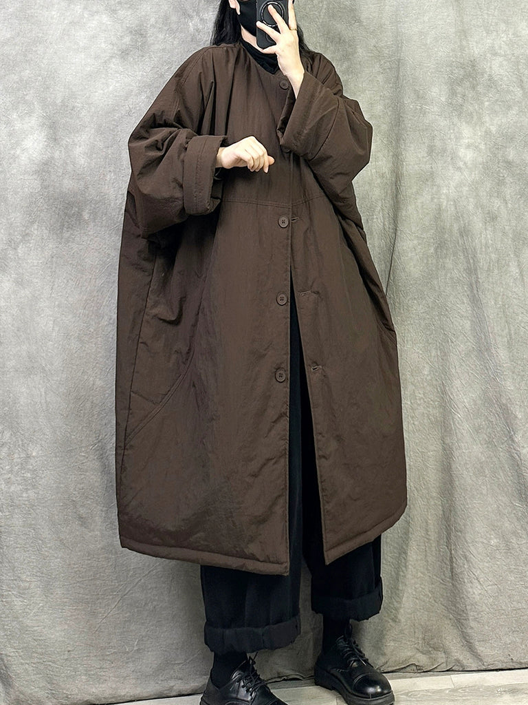 Plus Size Women Autumn Pure Color V-Neck Padded Long Coat