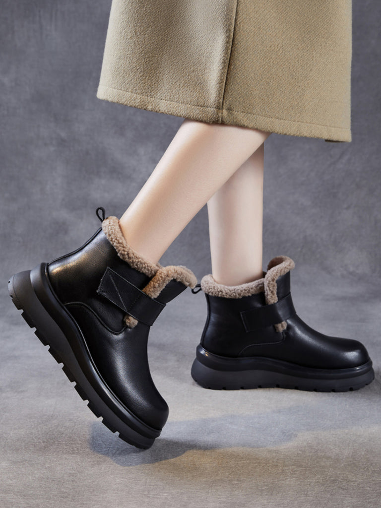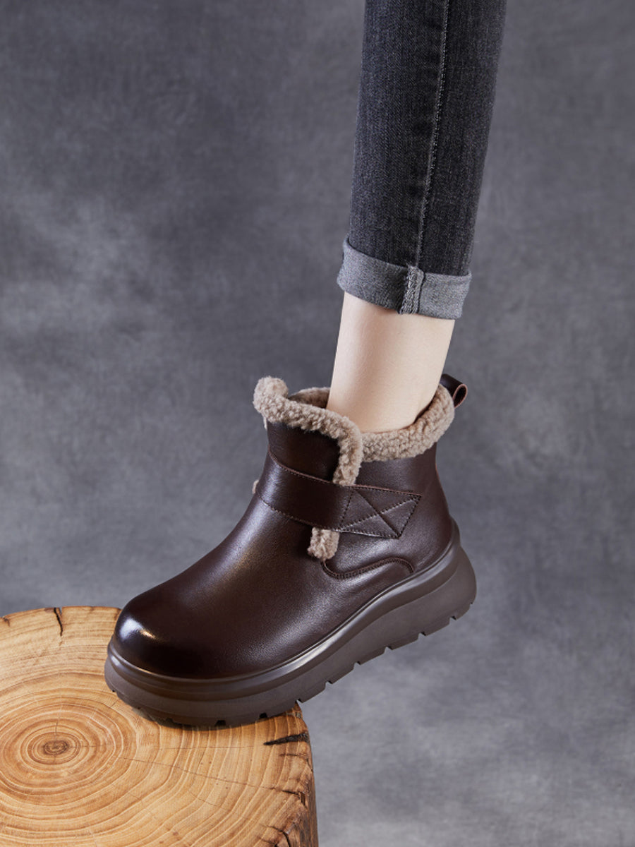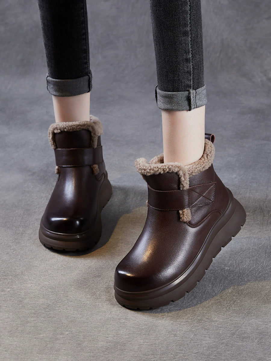 Women Winter Genuine Leather Fleece-lined Boots