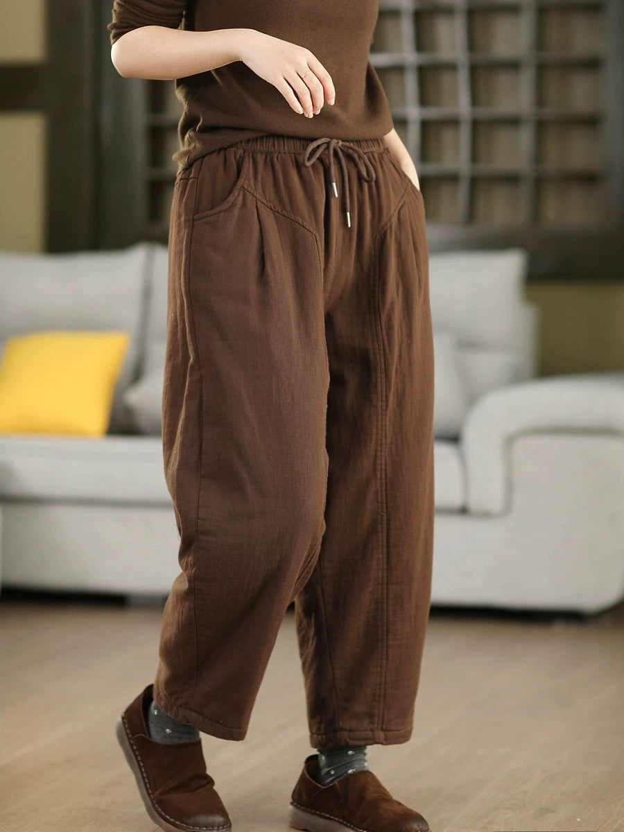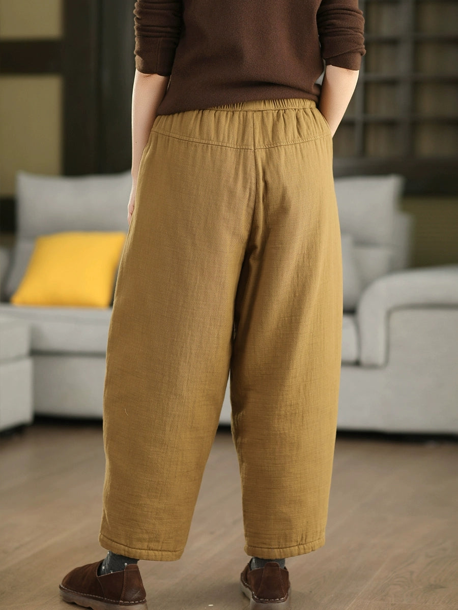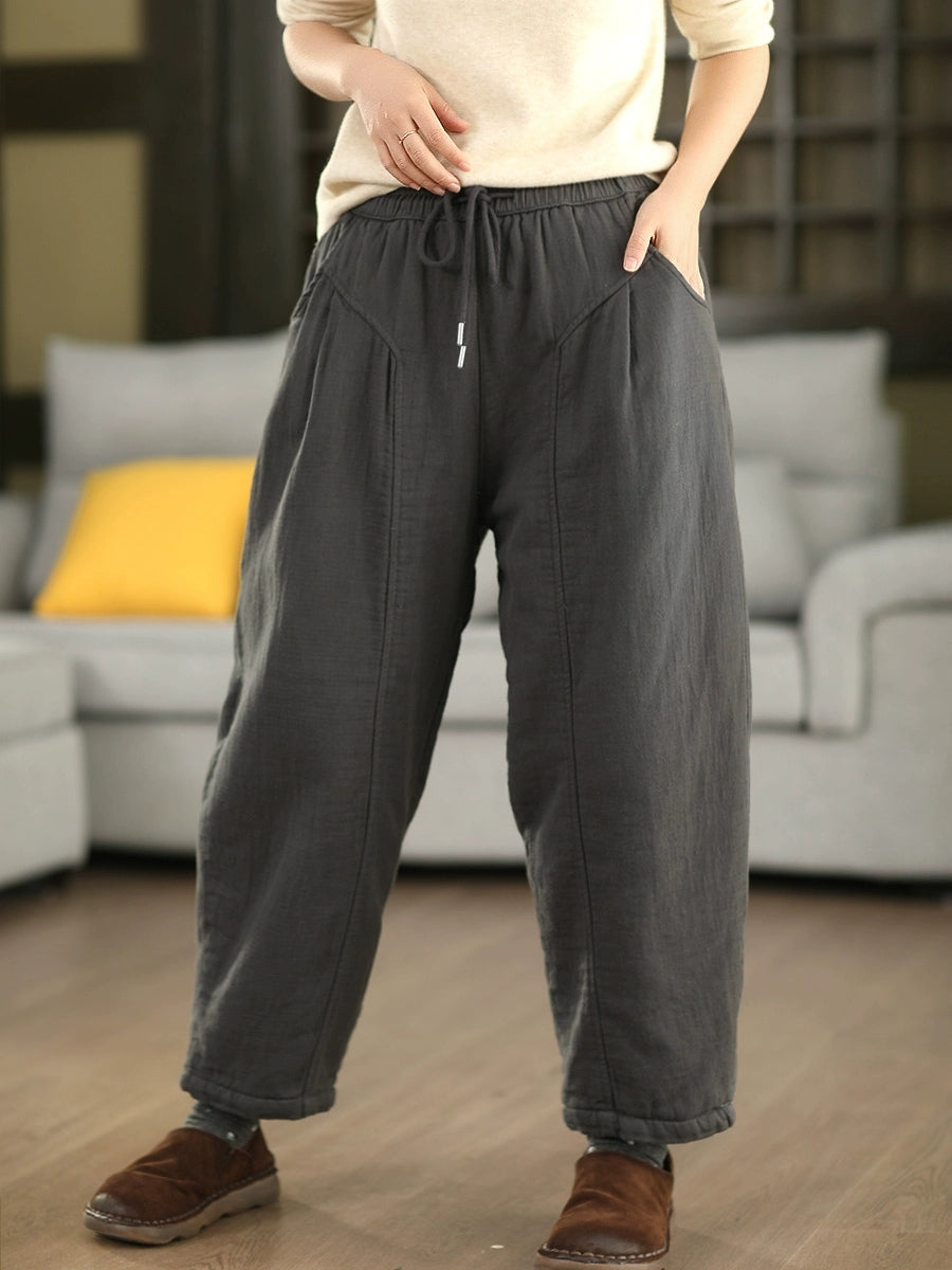 Women Winter Casual Pure Color Cotton Padded Harem Pants