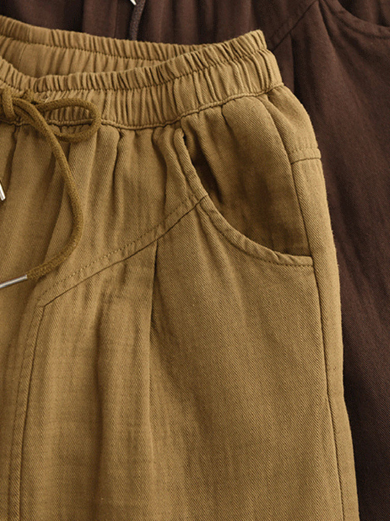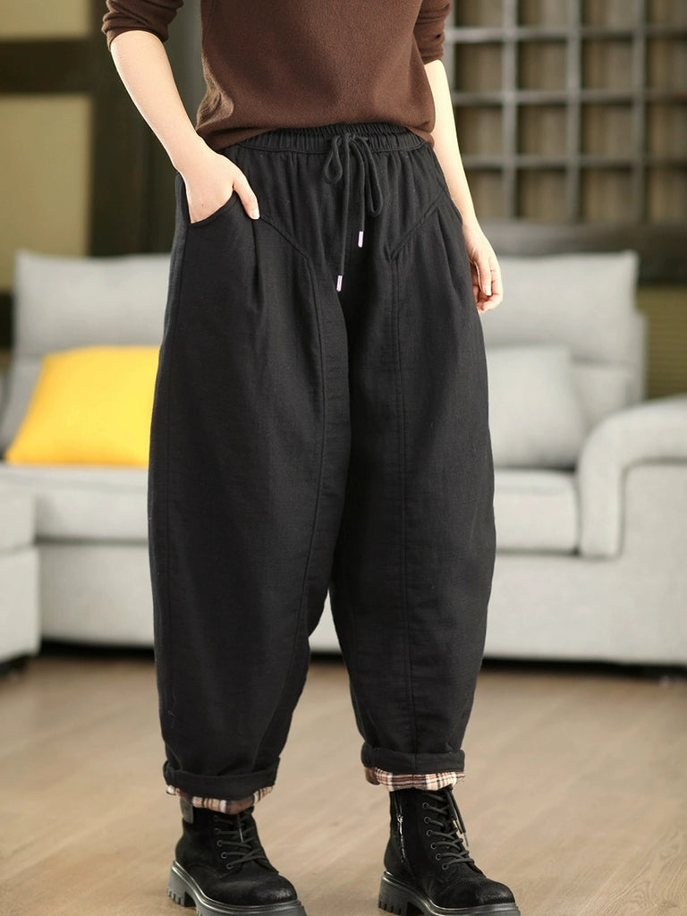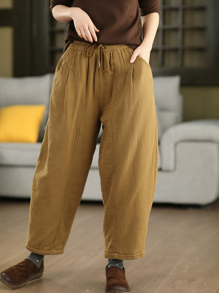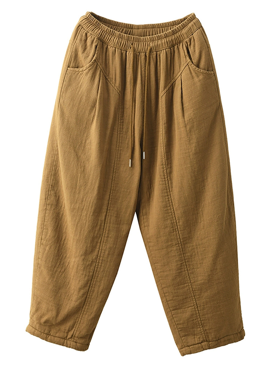 Women Winter Casual Pure Color Cotton Padded Harem Pants