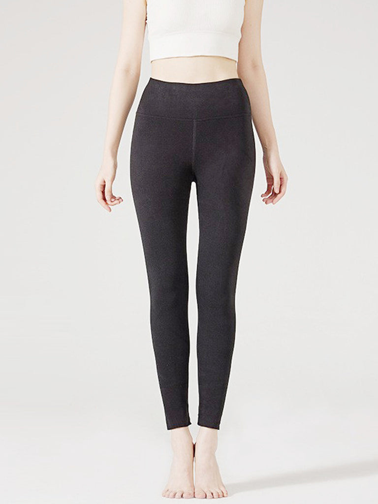 Women Winter Warm Pure Color Fleece-lined Leggings
