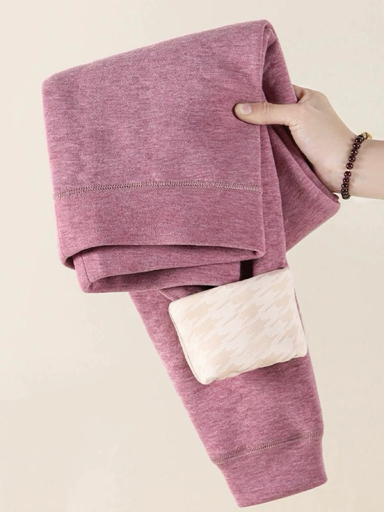 Women Winter Casual Ramie Fleece-lined Straight Pants