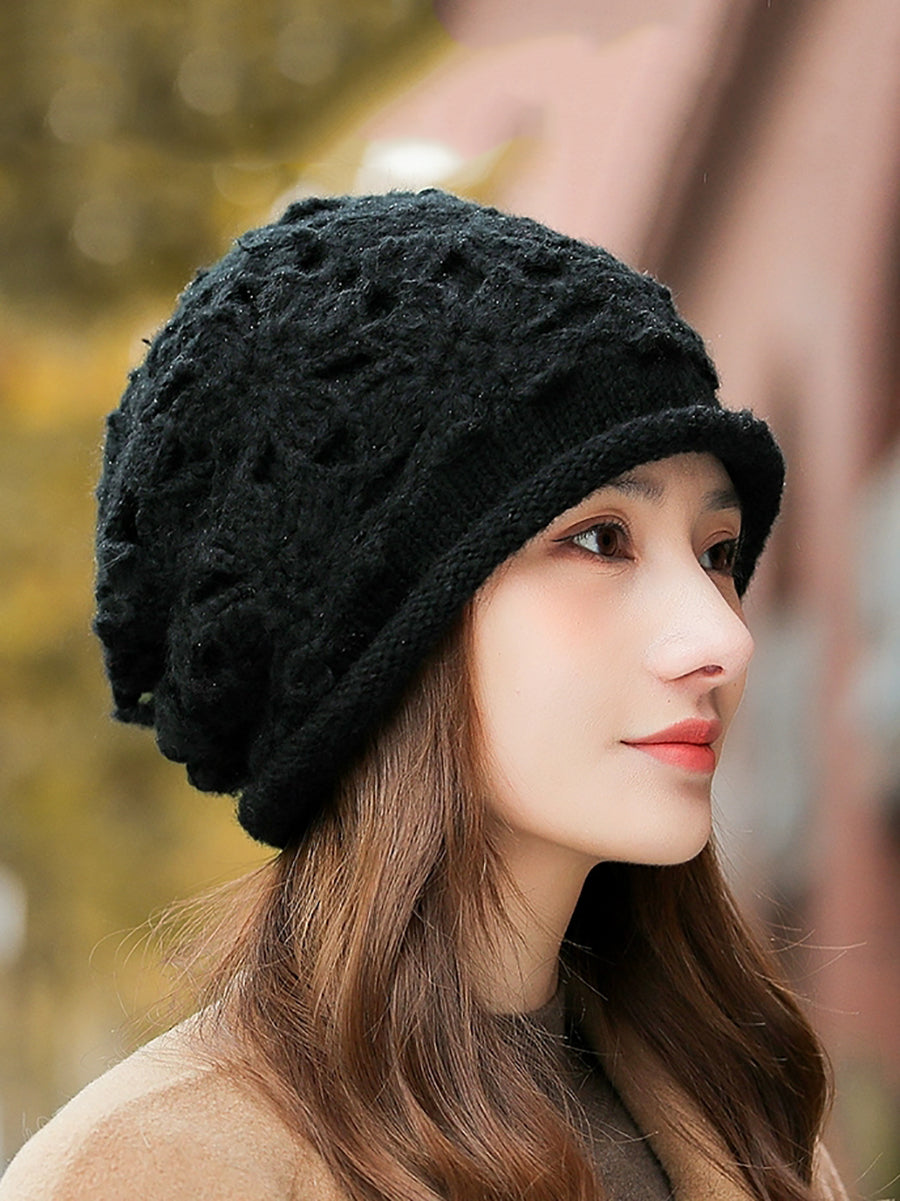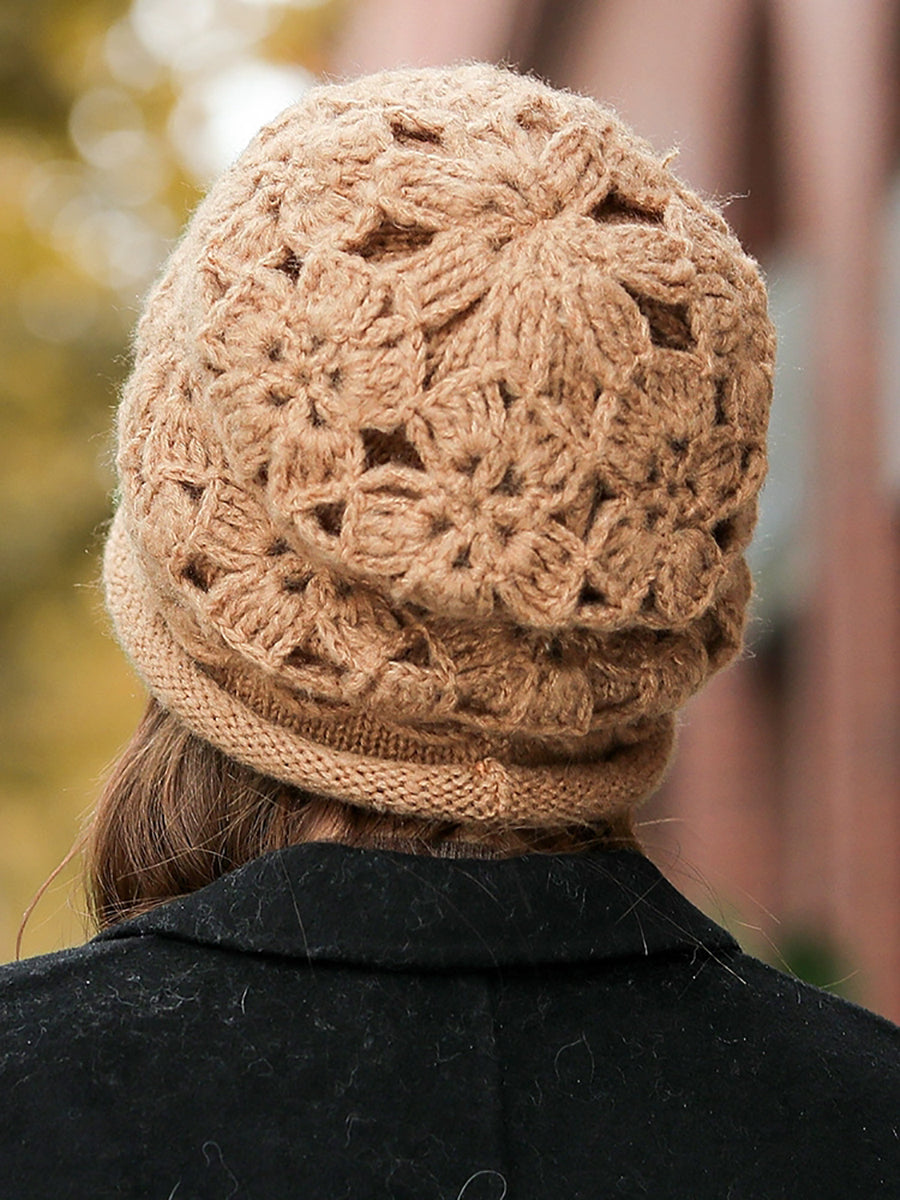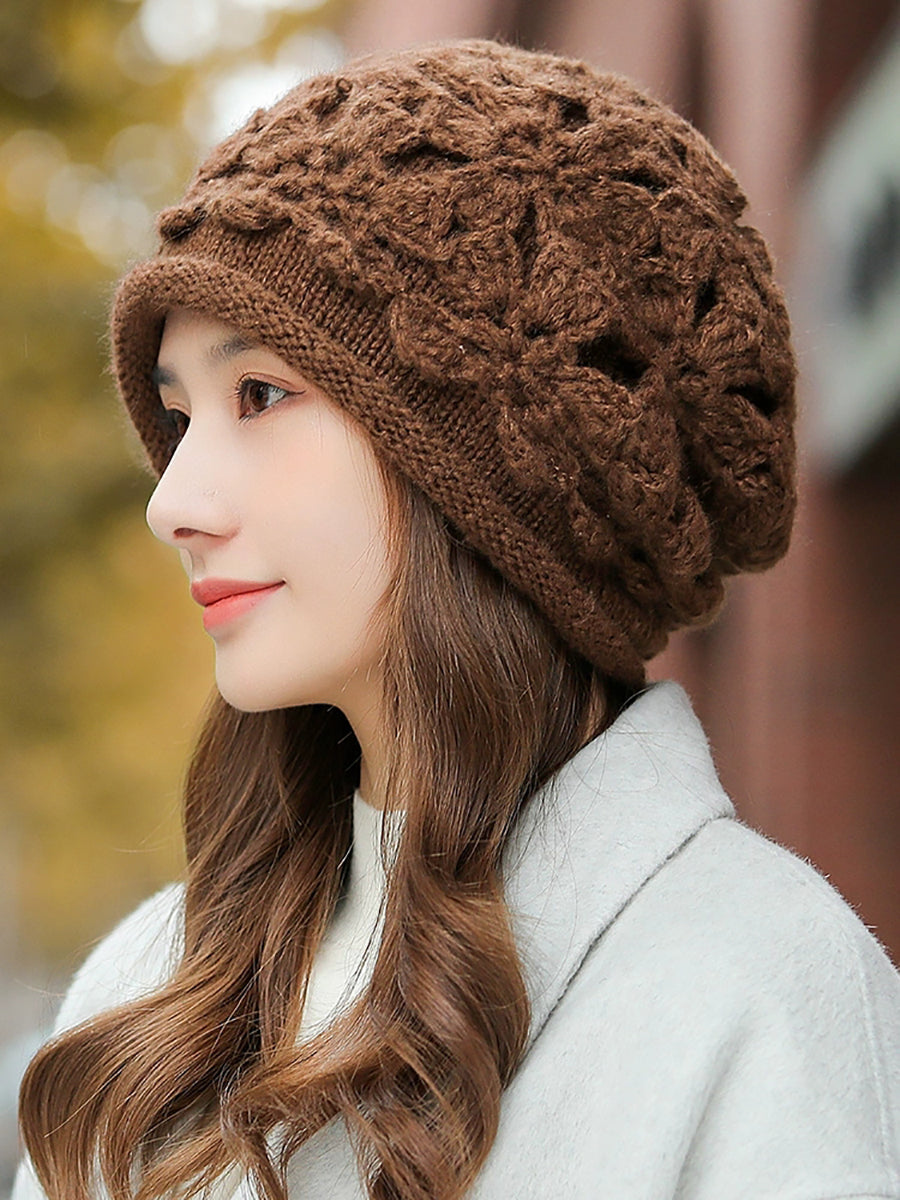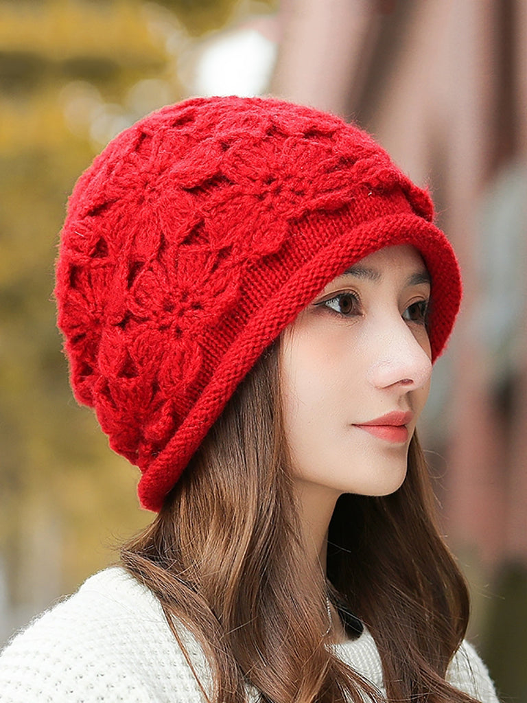 Women Artsy Winter Flower Knitted Hat